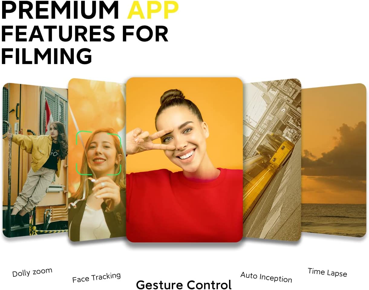 • [Intuitive AOCHUAN APP Operation]The AOCHUAN APP is compatible for iPhone and Android smartphones. In this upgraded AOCHUAN APP, you can achieve dozens of functions like gesture control and face tracking, beauty filters, auto-inception, timelapse and motion timelapse. And its UI is very simple and friendly without registration.Especially, SMART X gimbal can track your face and keep your face in the center when you are live-streaming,such as TikTok,Facebook,YouTube and Instagram IGTV.