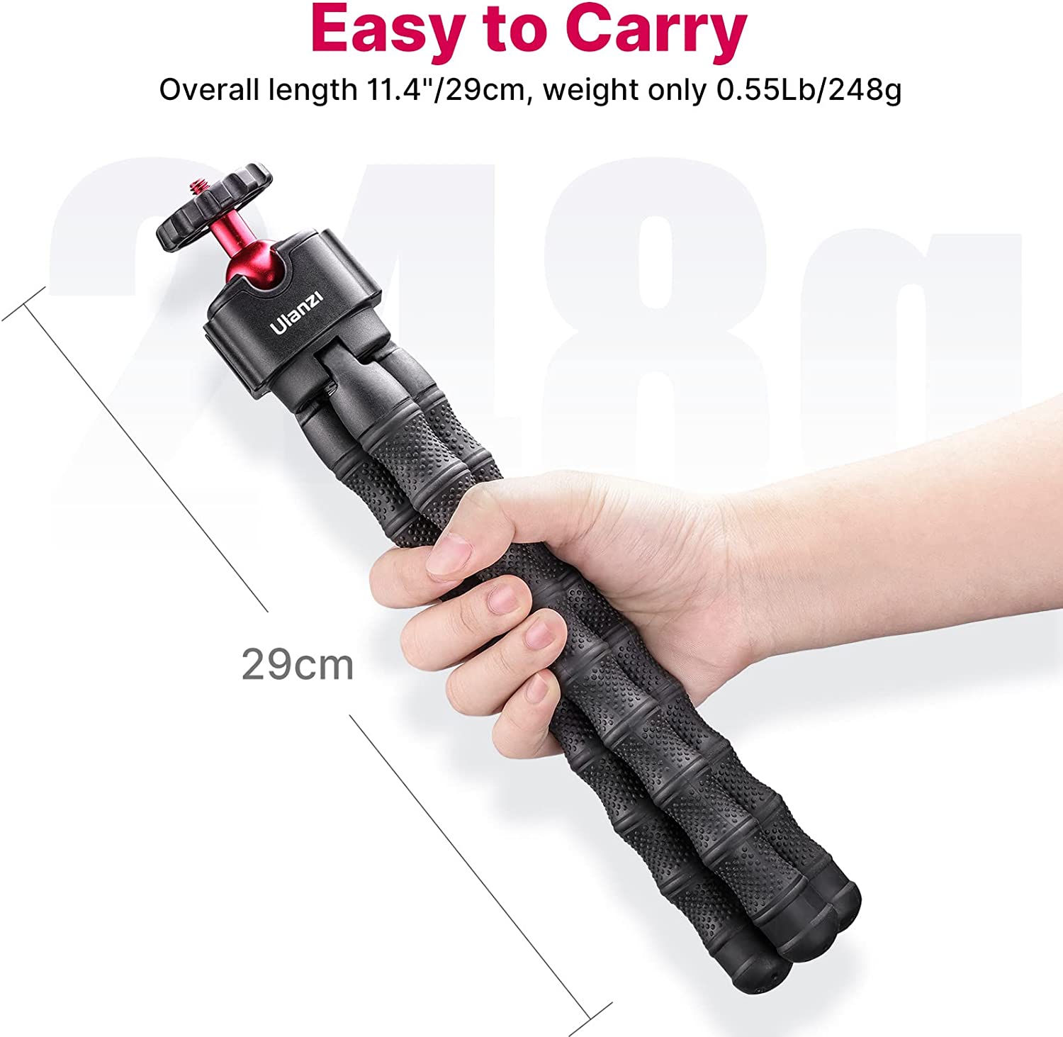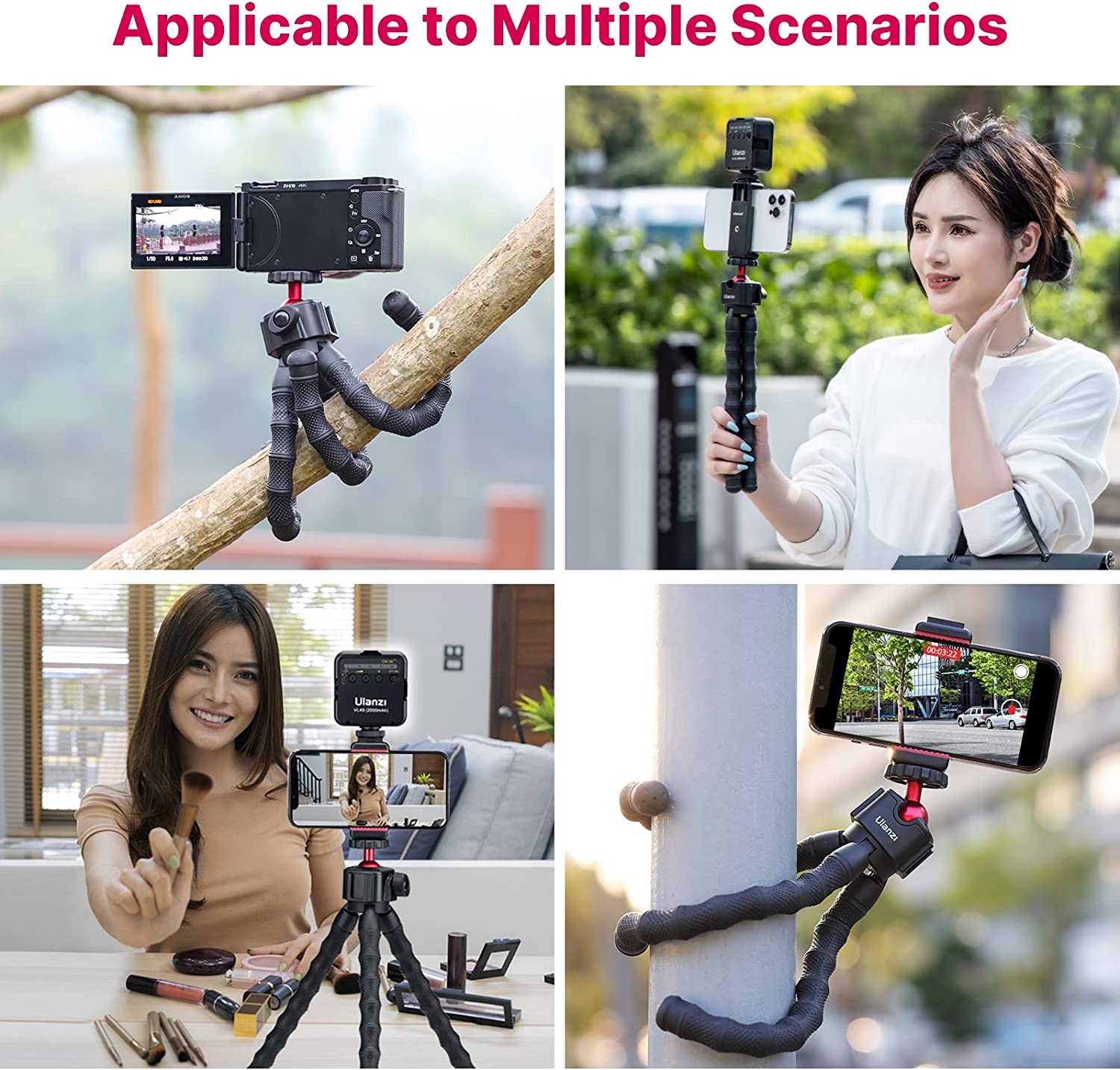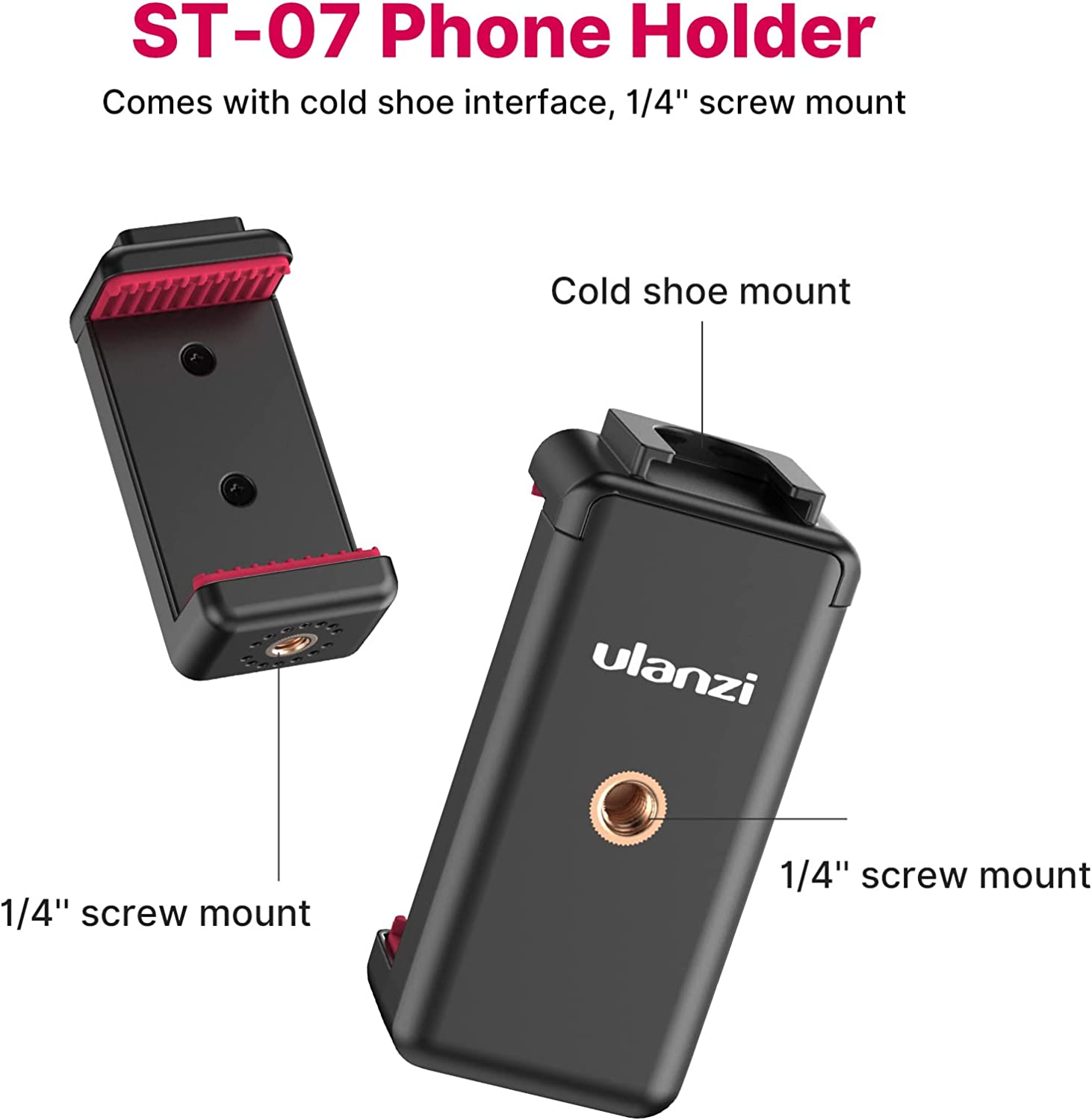 • Phone Holder---------phone holder support horizontal or vertical shooting and has a cold shoe, which can expand the video light/microphone. The width of the phone is 2.6 in---3.7 in. It is compatible with iPhone12/ 11/11 Pro/11 Pro Max/XS Max/8 Plus/for Samsung Galaxy/Google Pixel.