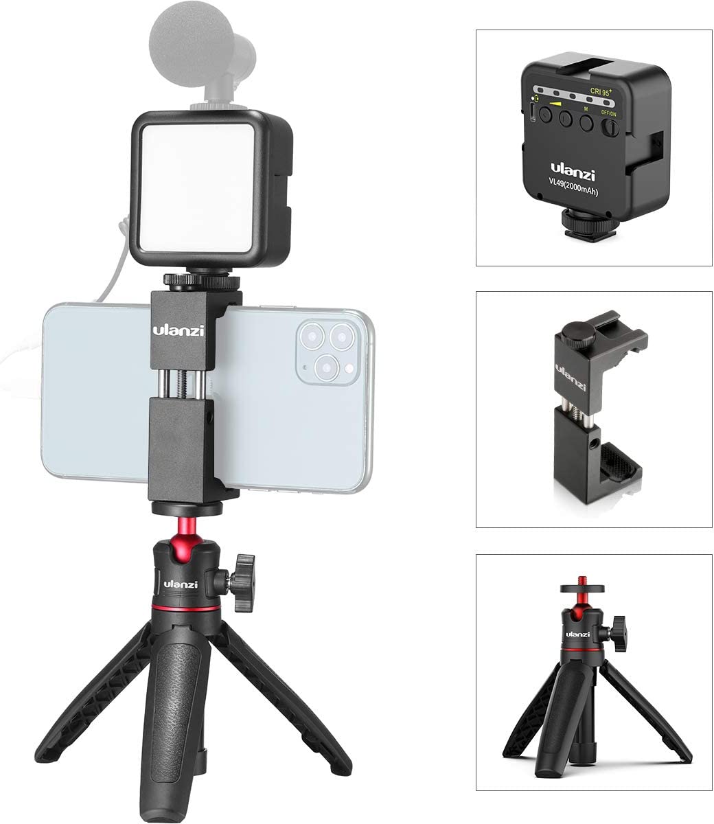 ULANZI Smartphone Vlogging Kit with Adjustable Handle Grip, Mini Tripod, Dimmable LED Light - YouTube, TIK Tok, Vlogging Equipment for iPhone/Android Smartphone Video Kit (ST-02S)