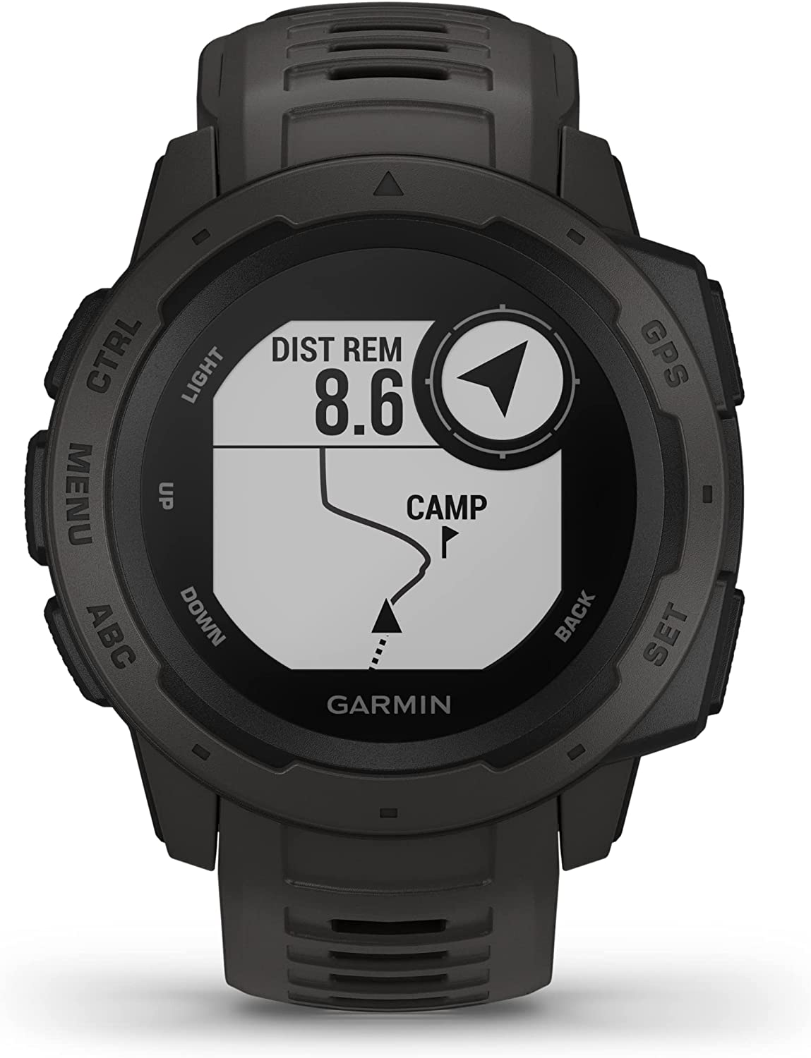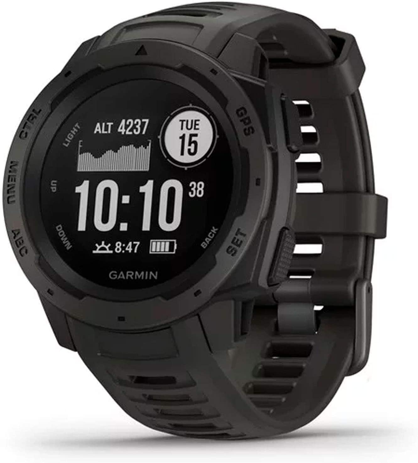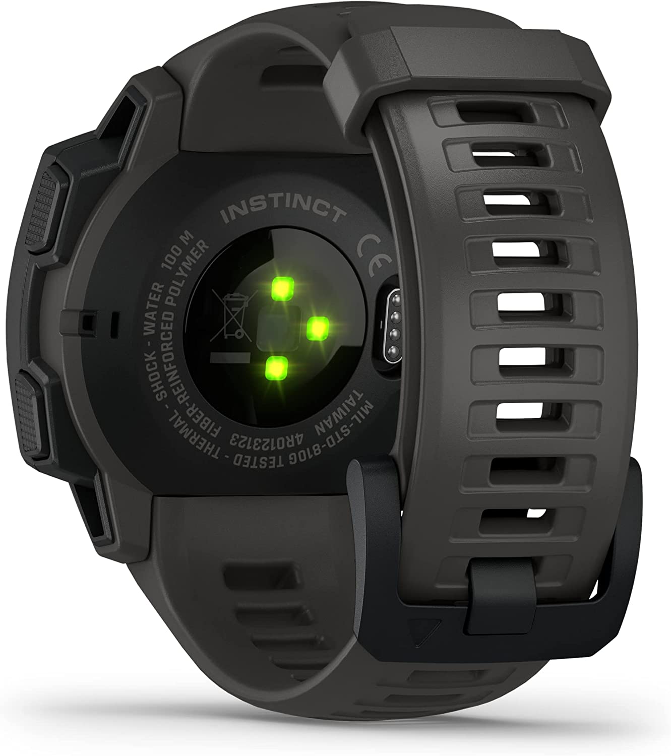 When you can rely on Instinct, the world can rely on you. This rugged, reliable outdoor GPS watch is built for the U. S. Military standard 810G for thermal, shock and water resistance (Rated to 100 meters). The fiber-reinforced polymer case adds strength and durability, and the chemically-strengthened, scratch-resistant display is high-contrast enough to read in bright sunlight, so you can take it with you into the extremes you face every day. Plus, the fully vented silicone bands include two independent, removable keeper loops to ensure a secure fit and to keep you from getting caught on things. Water rating: 10 ATM.