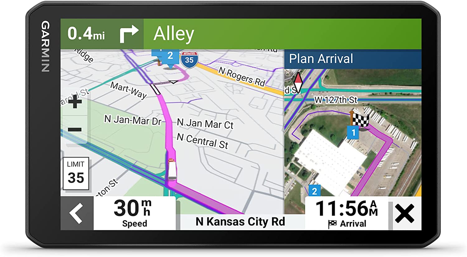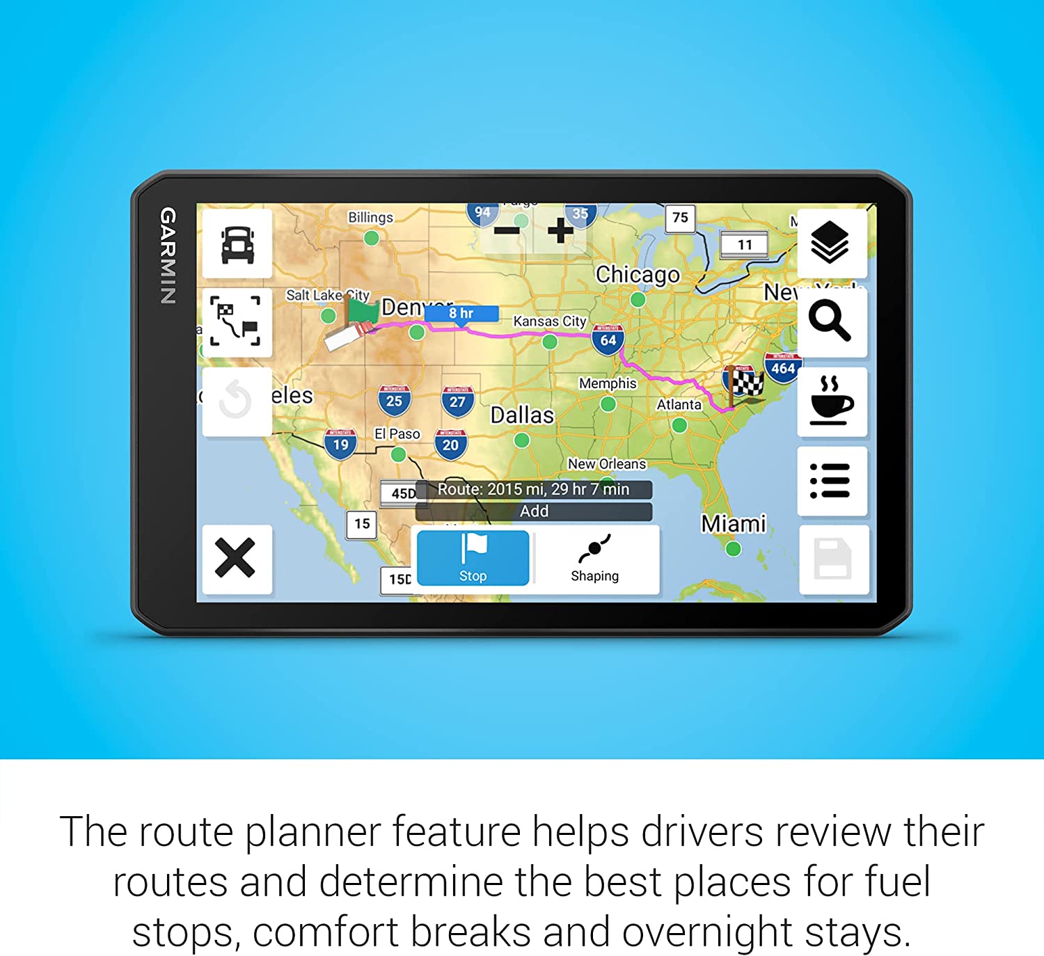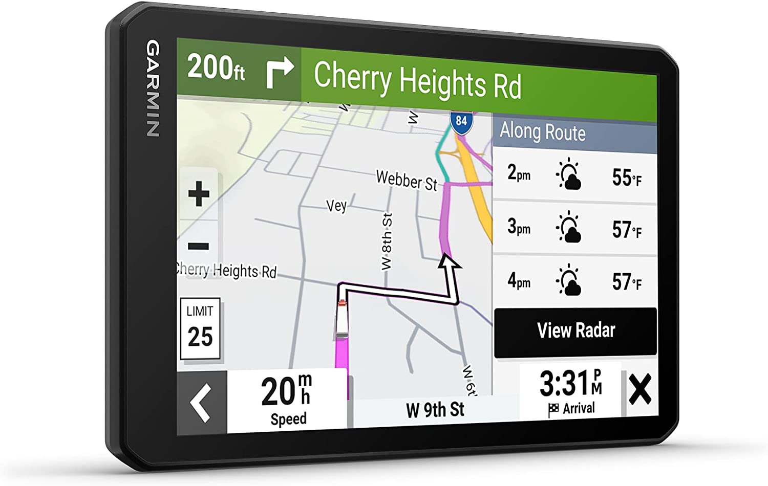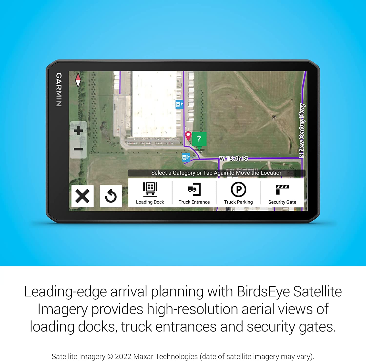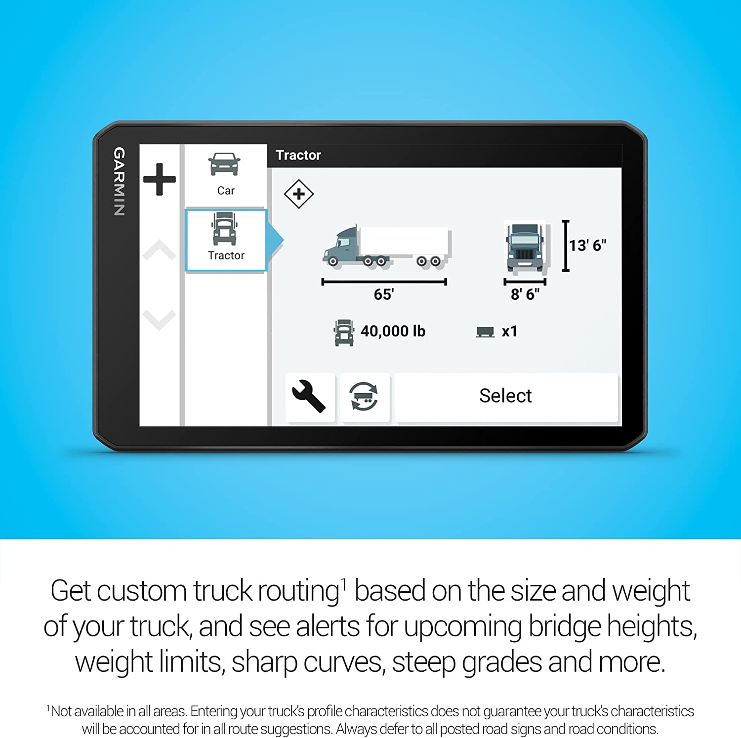 The dēzl™ OTR710 navigator is trucking simplified. It features custom routing (Not available in all areas. Vehicle characteristics may not be accounted for in all route suggestions. Defer to posted signs and road conditions.) based on the size and weight of your rig, strategic suggestions for fueling and breaks, map updates for North America and leading-edge arrival planning. BirdsEye Satellite Imagery helps ensure a smooth arrival with high-resolution aerial views of loading docks, truck entrances and security gates. Pair your navigator to your compatible smartphone to get real-time traffic and weather alerts, and receive PrePass® weigh station bypass notifications with an active PrePass account. The navigator’s 7” display offers a clear view and an easy-to-use experience as you maneuver.