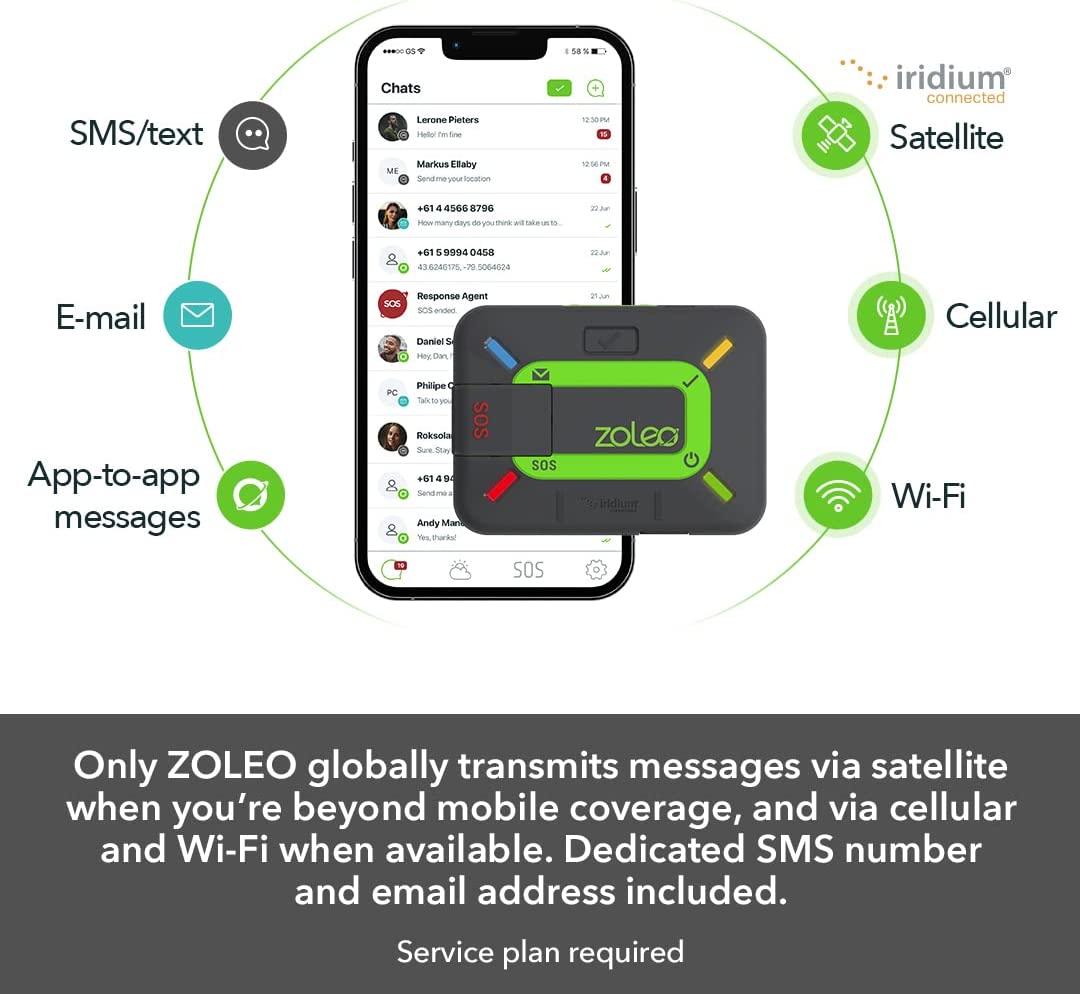 • ✉️GLOBAL MESSAGING AS IT WAS MEANT TO BE: ZOLEO extends your messaging coverage to everywhere on earth transmitting over the lowest cost network available (satellite, cellular or Wi-Fi). ZOLEO offers a familiar text messaging experience to and from any SMS text number, email address or another ZOLEO app user. By taking advantage of cellular or Wi-Fi when available and the Iridium network (a truly global satellite network) when it isn’t, ZOLEO offers seamless coverage wherever you go!