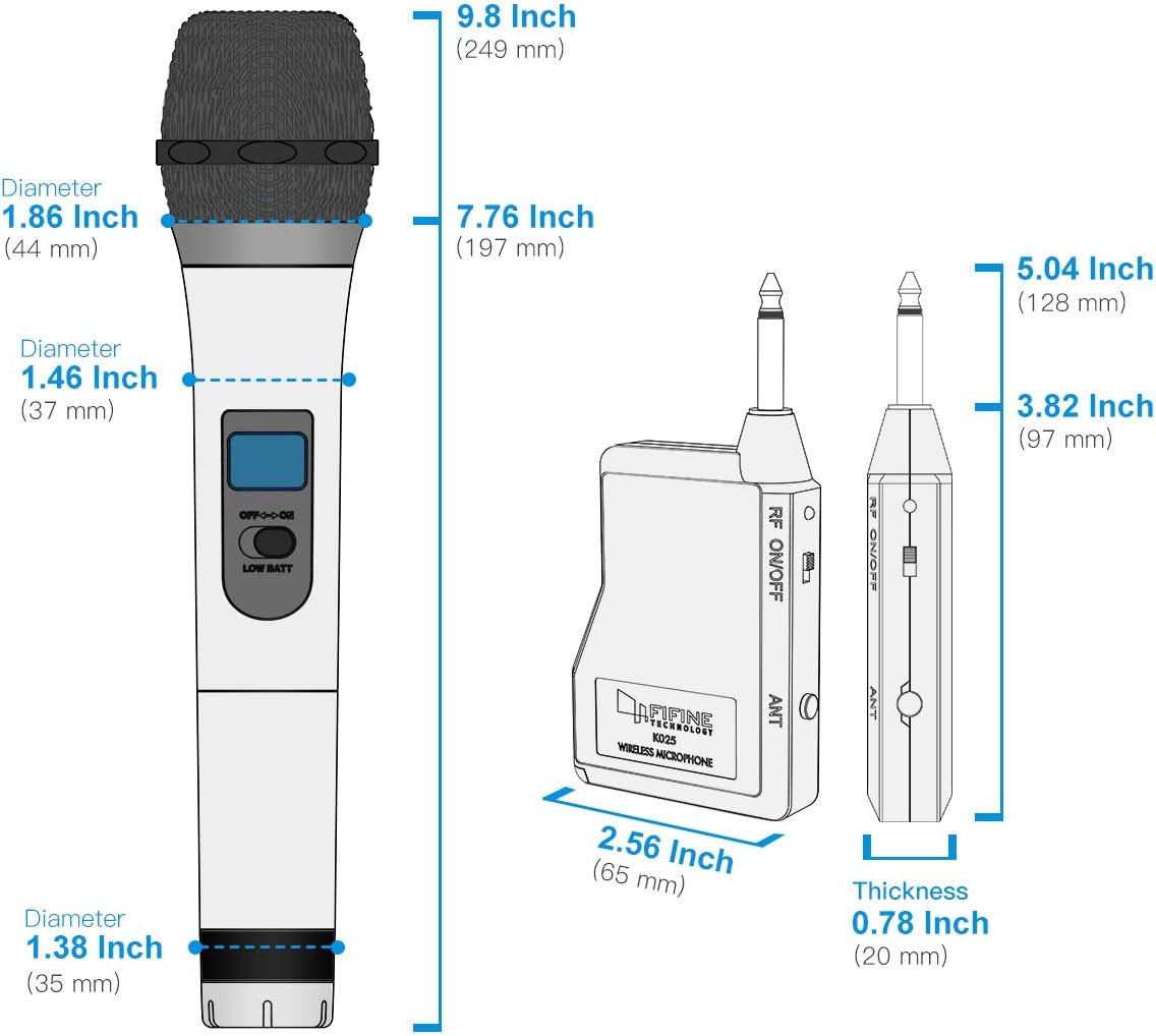 • What You Get--Lightweight, versatile, compact wireless microphone and receiver with durable 1/4 inch jack (6.35mm) output for DJ mixers and guitar amps. (Batteries are NOT Included). If you have questions, please contact us directly for proper suggestions.
