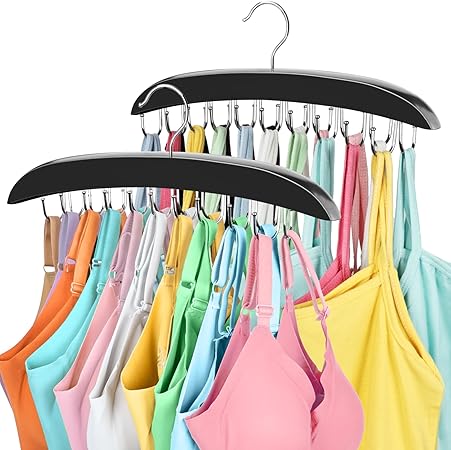 2 Pack Bra Organizer for Closet, 360«� Rotating Bra Hanger Space Saving w/20 Foldable Metal Hooks, Tank Top Hanger Closet Organizers and Storage for Camisoles/Tank Tops/Bras/Belts/Scarves Black