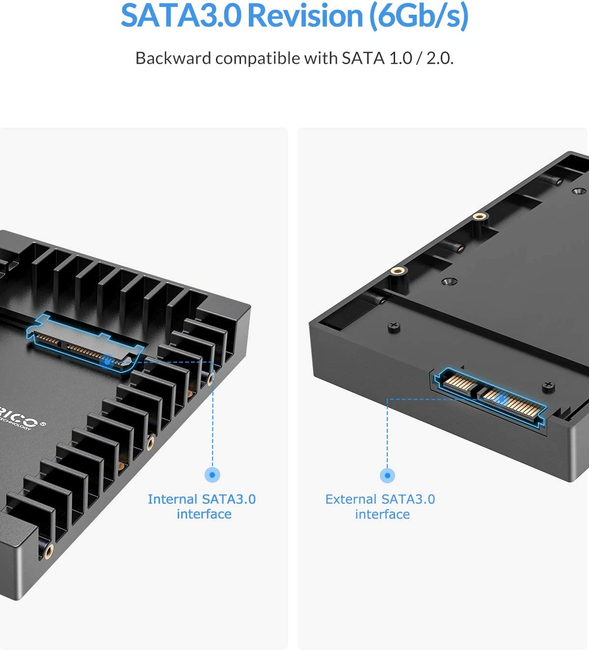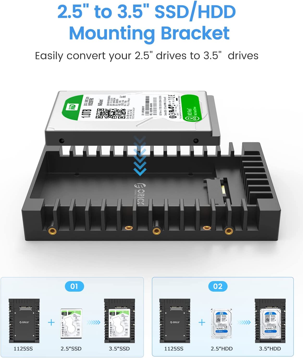 ORICO 2.5 SSD SATA to 3.5 Hard Drive Adapter Internal Drive Bay Converter Mounting Bracket Caddy Tray for 7 / 9.5 / 12.5mm 2.5 inch HDD / SSD with SATA III Interface(1125SS)