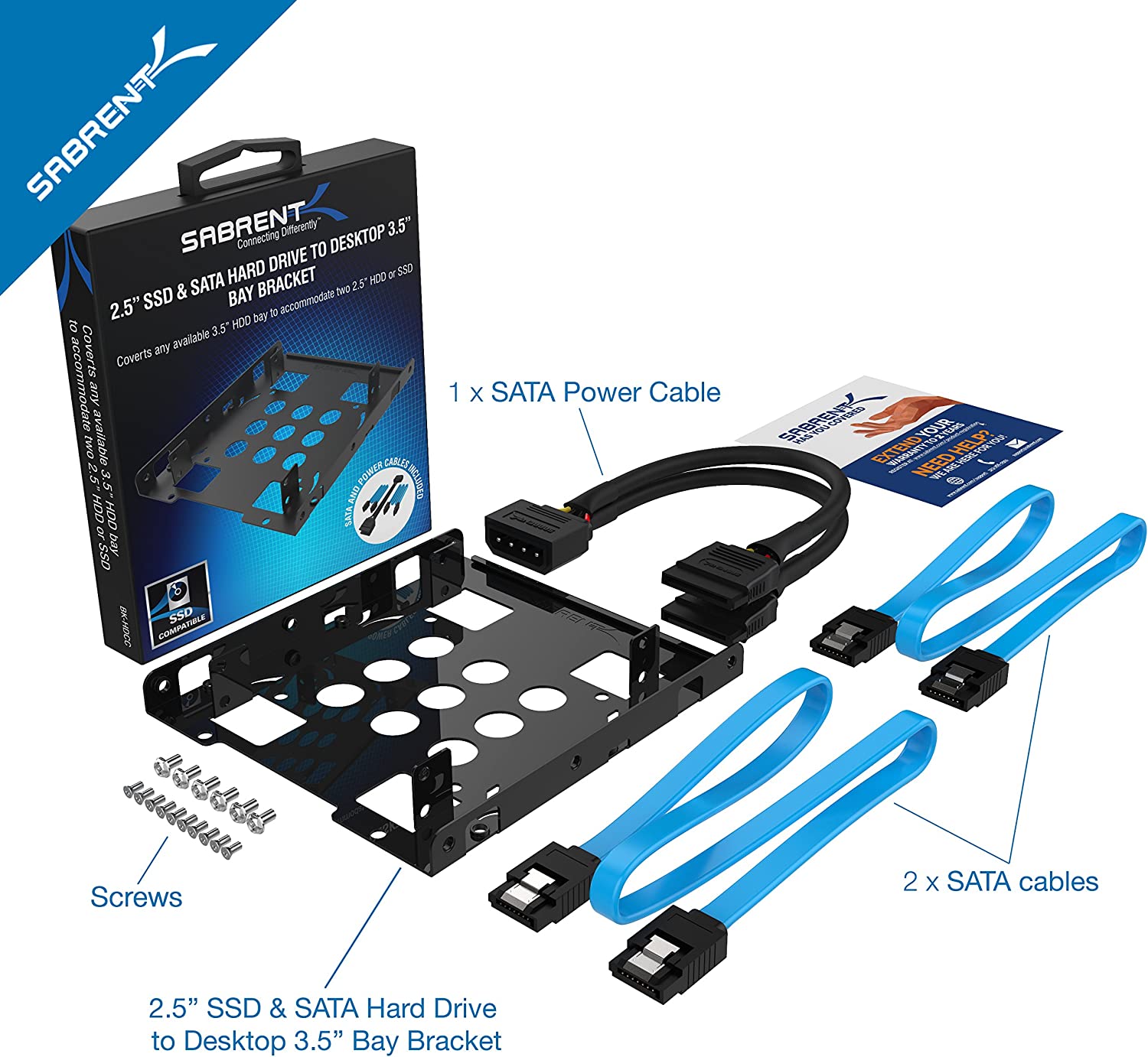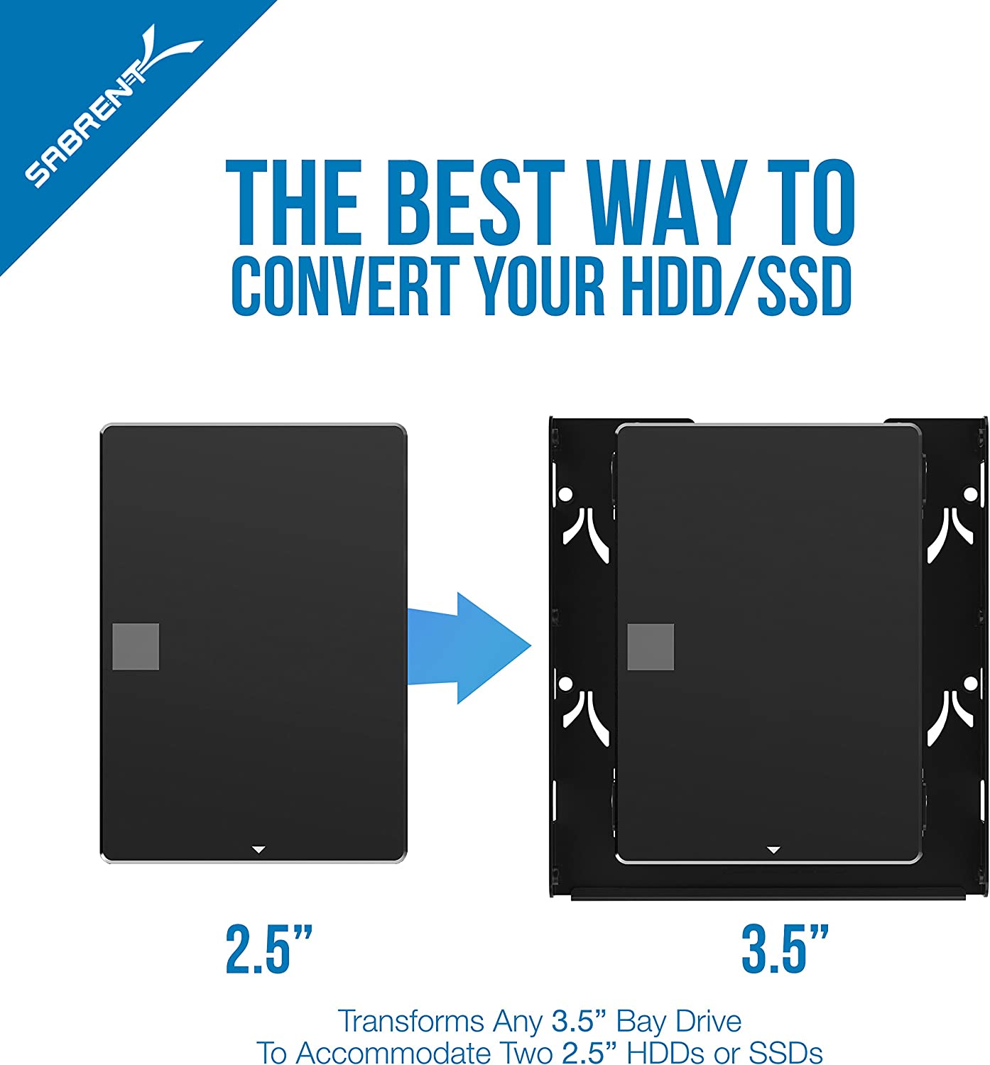 SABRENT 3.5 Inch to x2 SSD / 2.5 Inch Internal Hard Drive Mounting Kit [SATA and Power Cables Included] (BK-HDCC)
