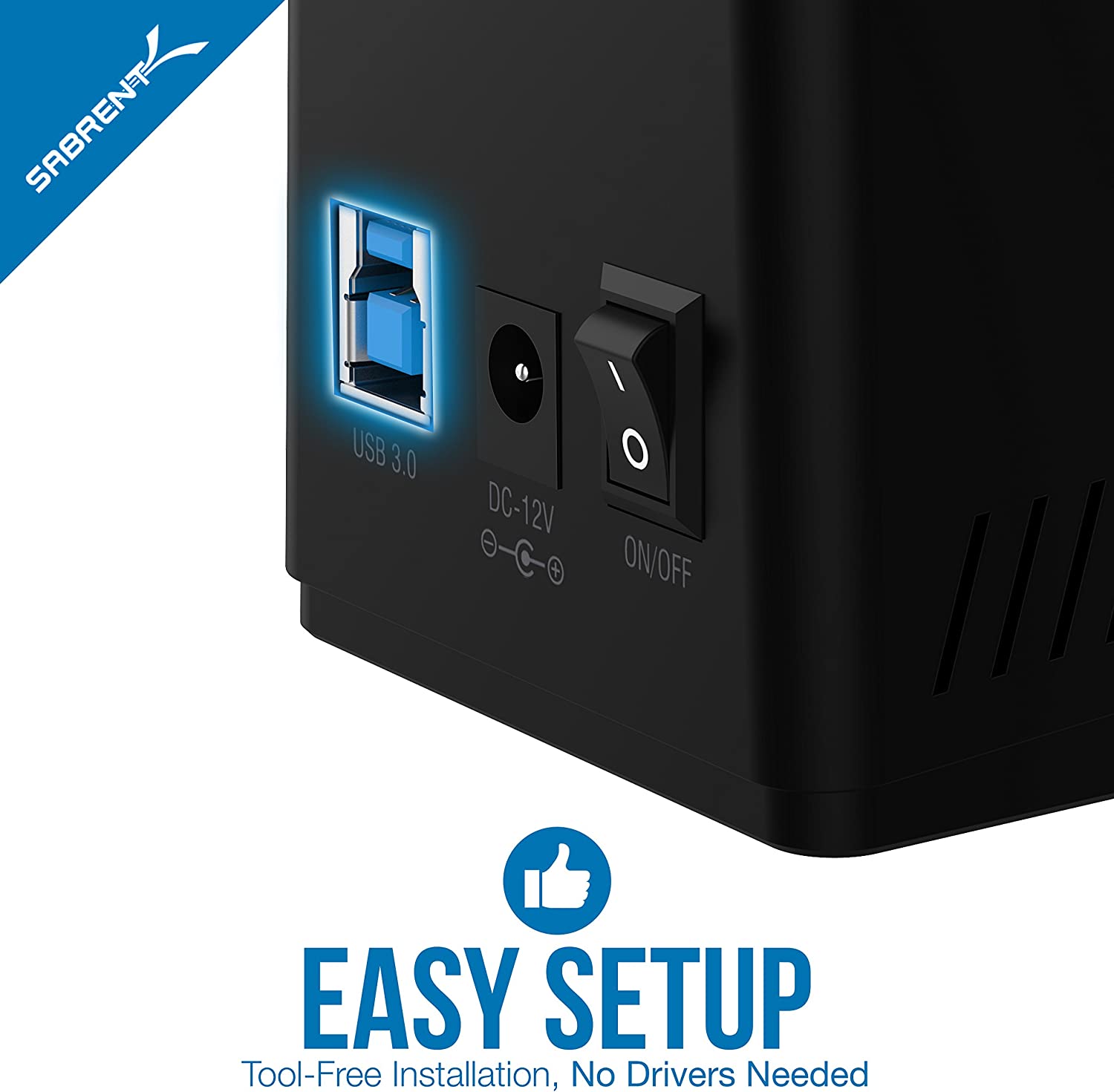 SABRENT USB 3.0 to SATA I/II/III Dual Bay External Hard Drive Docking Station for 2.5 or 3.5in HDD, SSD with Hard Drive Duplicator/Cloner Function [20+TB Support] (EC-HD2B)