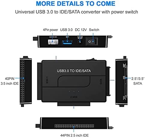 • 【Support Hard Drives Capacity up to 6TB】 Hard drive adapter has a SATA III connector and two IDE connectors (40pin and 44pin). we Provide a 4pin power cable for a 3.5" IDE drive, Tips: Some IDE hard drive is old, you need to set a jumper to turn on the disk(set the master disk and the slave disk).