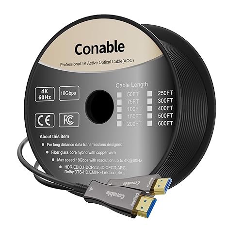 4K HDMI Cable 75 FT, High Speed Fiber Optic HDMI Cable, Unidirectional 18Gbps, Ultra HD, Supports 4K@60Hz, 4:4:4 RGB, HDCP 2.2, 3D ARC, HDR10, Dolby Vision, Zinc Alloy Shell, Slim Cable, OD : 4.8mm