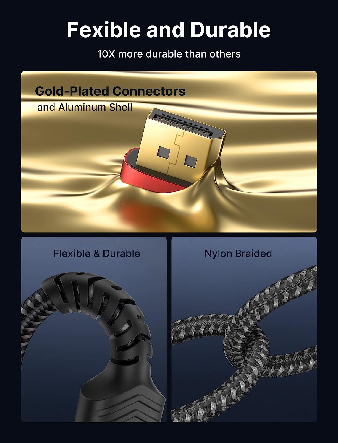 • 【240Hz Displayport Cable】240Hz refresh rate can bring you excellent gaming experience. No motion blur, screen tearing or flickering. You can clear perceive the movement of enemy. DP 1.4 cable supports 32.4 Gbps bandwidth. When playing a movie, it can transfer 2GB data per second an average, stronger than DP 1.2 cable.