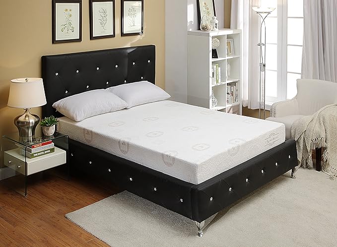 AC Pacific AC-BED16 Modern Upholstered Platform Bed with Faux Crystal, Button-Tufted Headboard and Footboard, Eastern King, Black