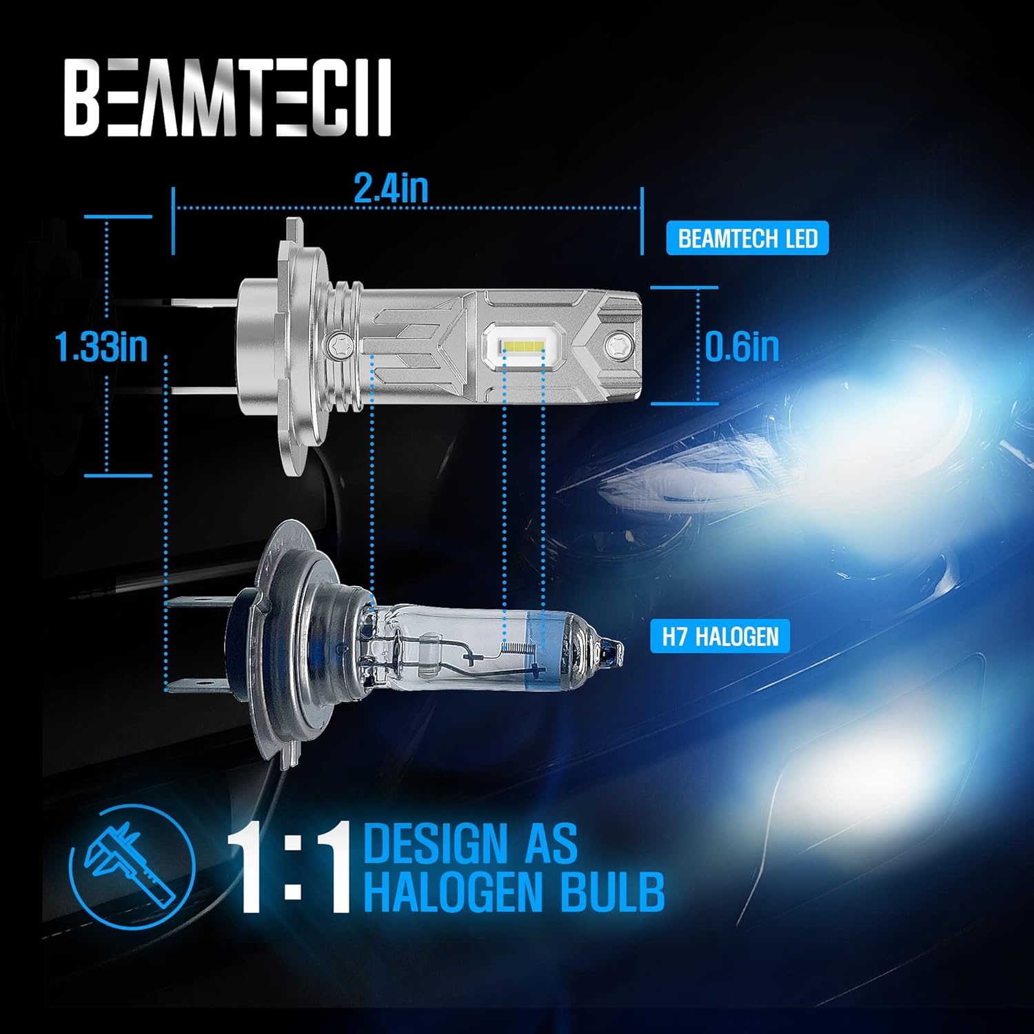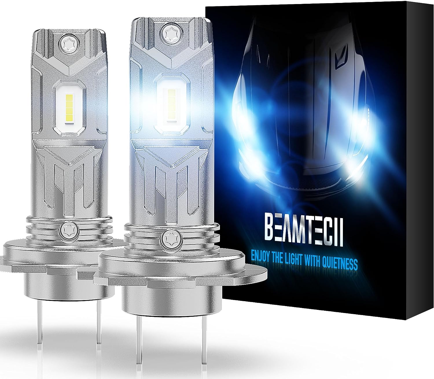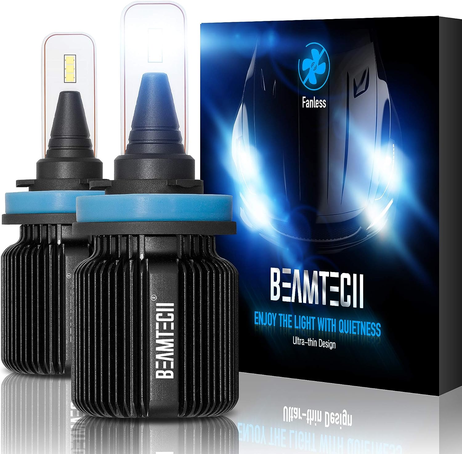 BEAMTECH H11 LED Bulb, 8000LM 40W Fanless CSP Y19 Chips 6500K Xenon White H8 H9 Extremely Bright Conversion Kit Ultra Thin All in One Halogen Replacement