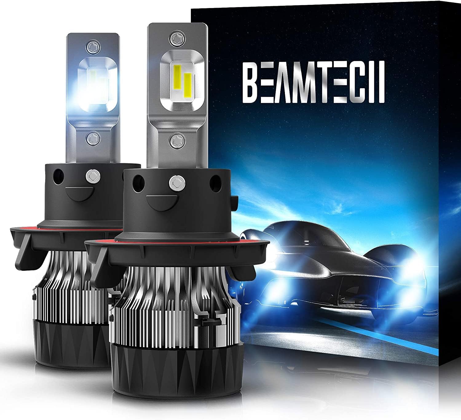 BEAMTECH H13 LED Headlight Bulbs, 16000LM 70W 6500K Extremely Super Bright 9008 led Light Bulb 30mm Heatsink Base CSP Chips Conversion Kit,Xenon White Small Size Halogen Replacement