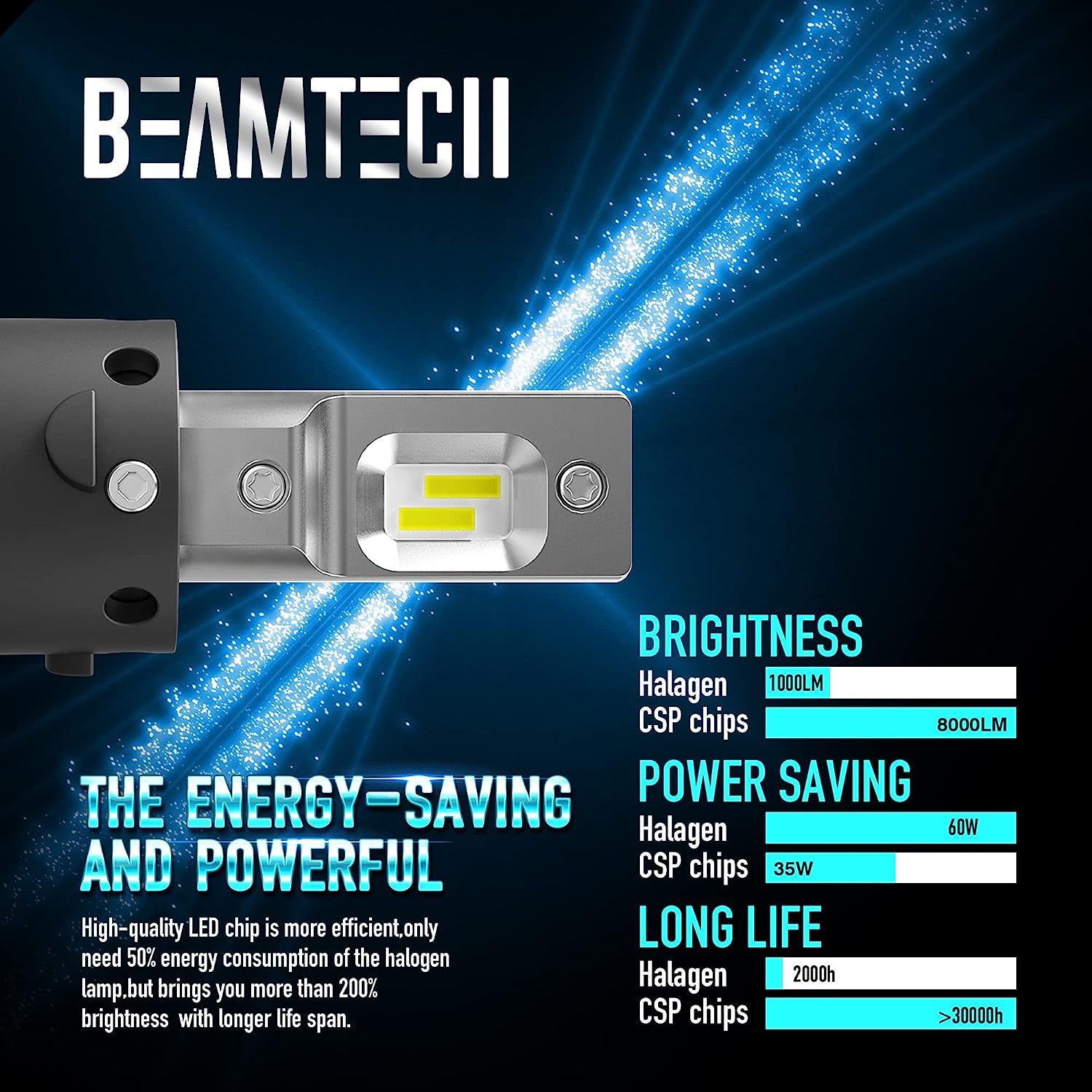 • Great Material:Housing and fan works even in extreme situations,it always keep working and show a clear bright light.Insert EMC Intelligent temperature control system,speed of heat dissipation 5 times faster than other materials.Thermal conductivity up to 400w/m.k.