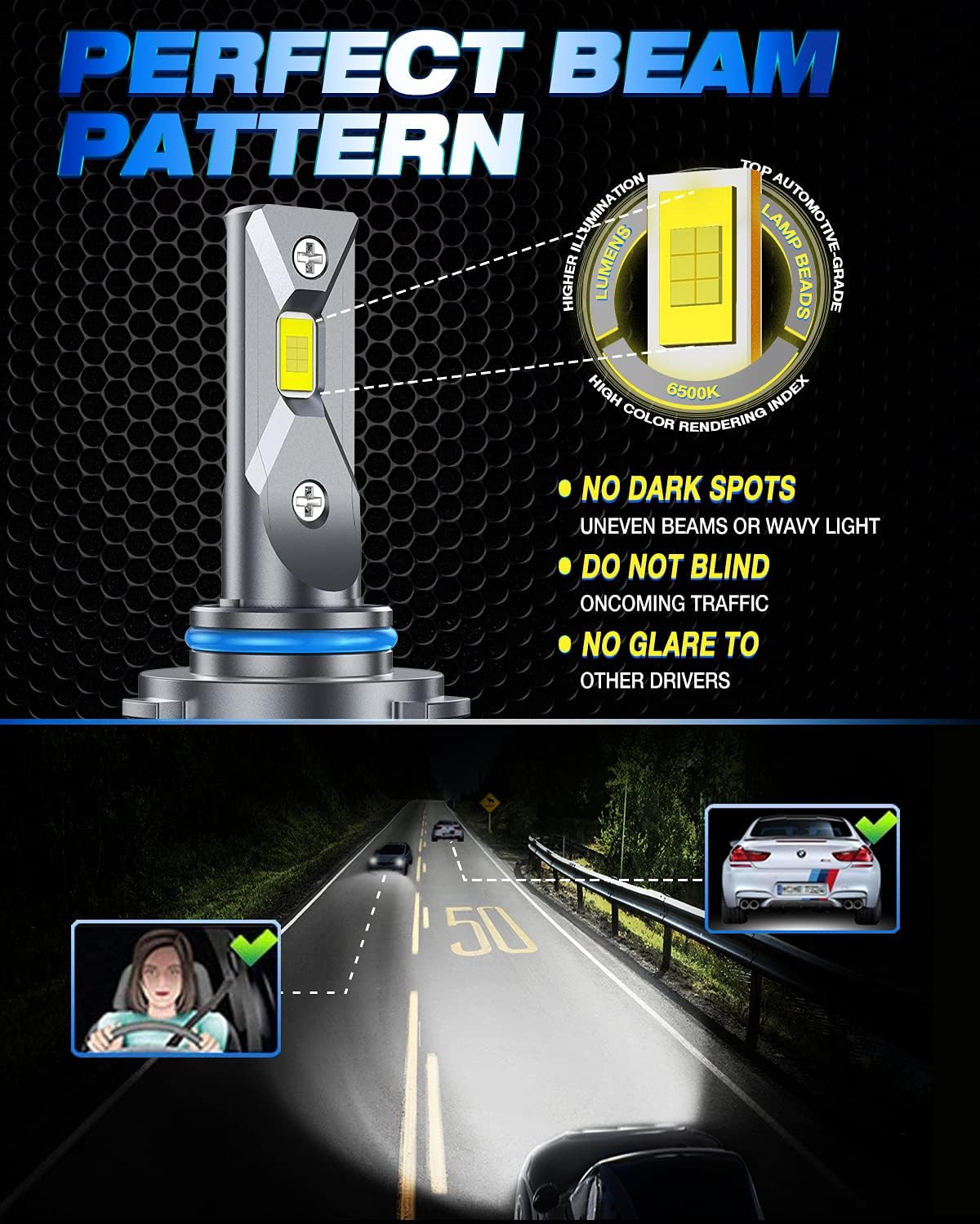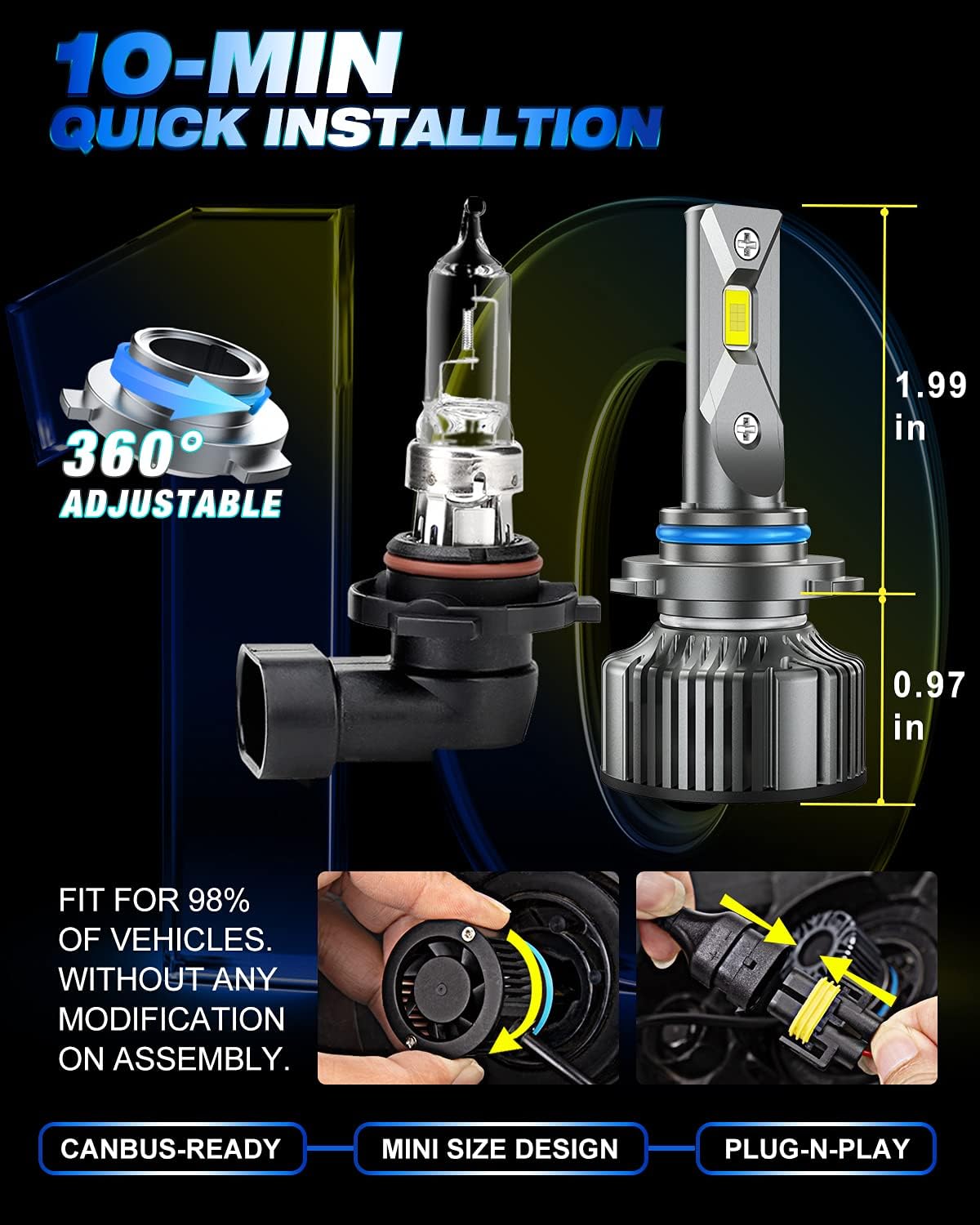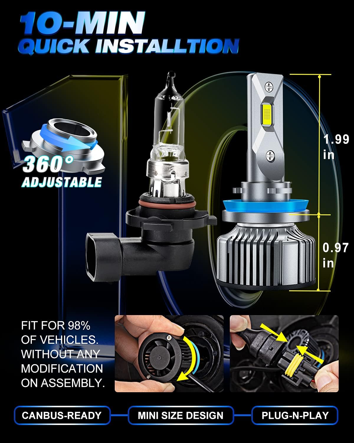 • 【10 Minutes Easy Installation】 No tools needed to replace the 1:1 design H11/H8/H9 LED bulb. Perfectly fit into your housing and factory sockets, just plug and play.