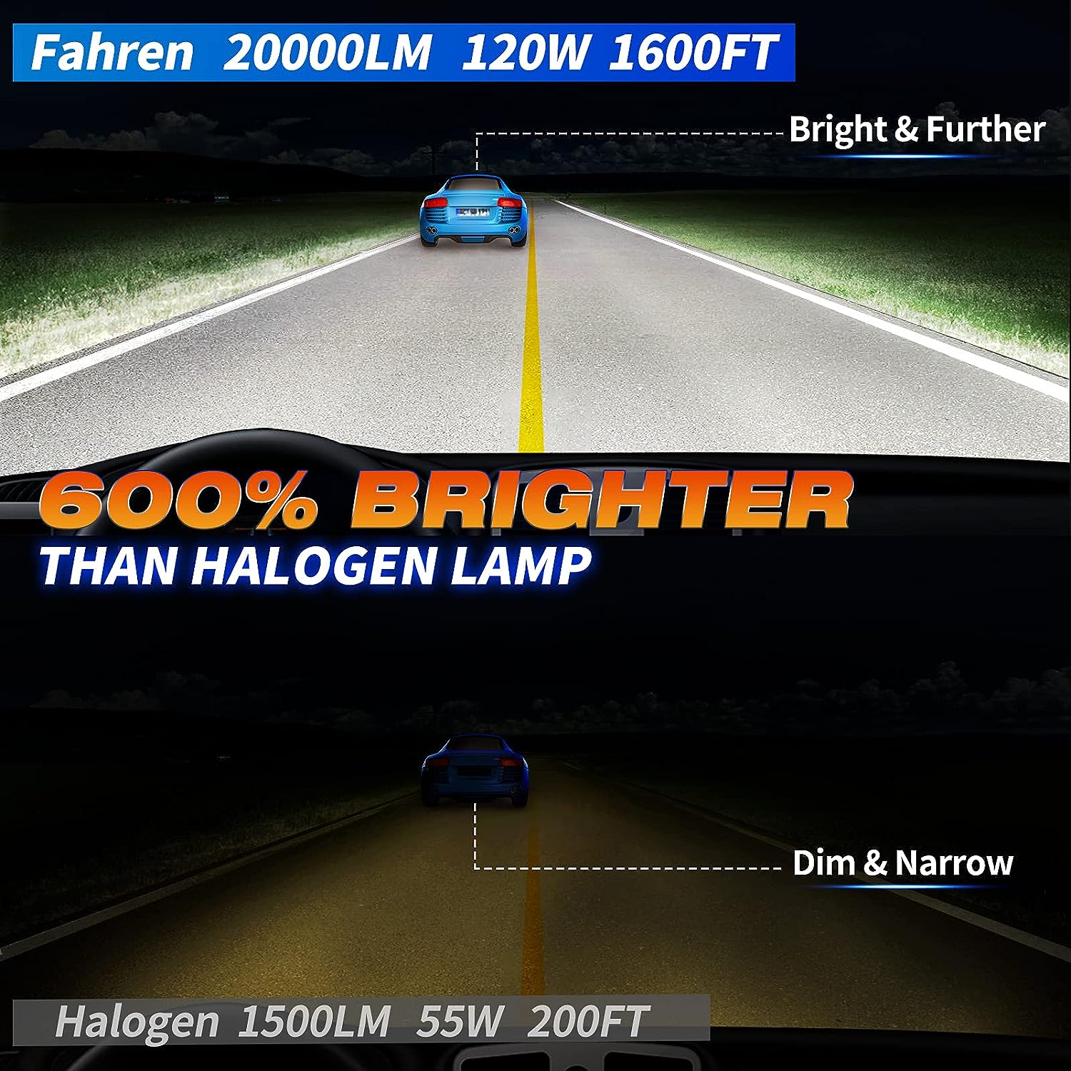 Fahren H11/H8/H9 LED Headlight Bulbs, Upgrade 22000 Lumens 600% Brightness 6500K Cool White LED Bulb, Plug-and-Play Replacement Headlamp Bulbs Kit,IP68 Waterproof,Pack of 2