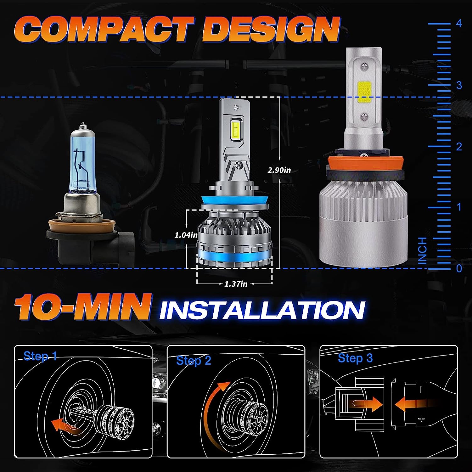 • 10-MIN QUICK INSTALLATION: Almost an identical design to the original halogen bulbs which makes direct replacement of factory halogen bulbs as easy as “plug and play”.Just check out our installation video, it's easy to install without anyone's help.