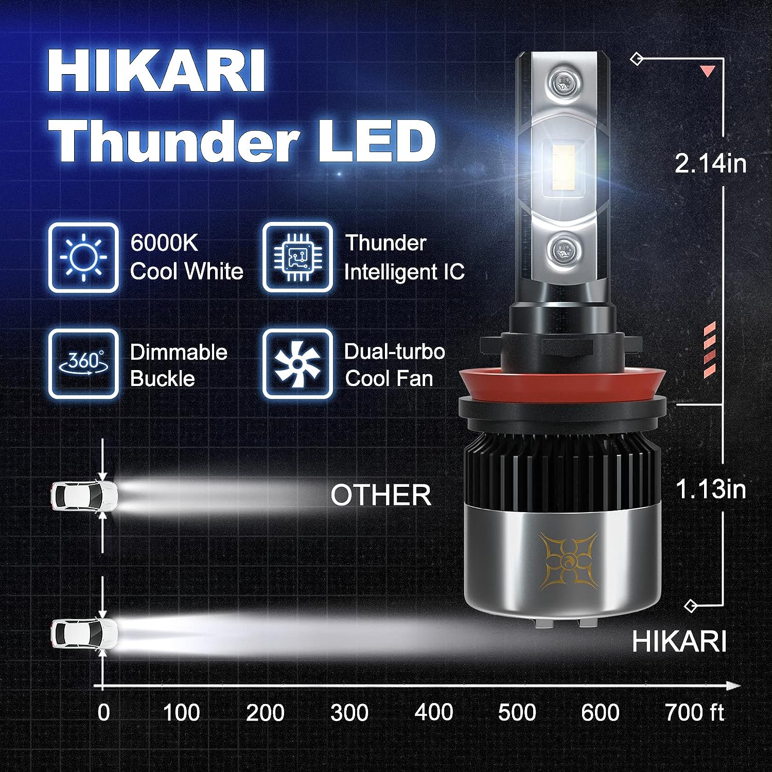 • 【12,000lm High Lumens Performance】HIKARI Thunder LEDs are designed for the performance-orientated driver. It produces superior light output using the latest LED chips that allow these bulbs to produce over 12,000 lumens of pure high quality light! HIKARI LEDs also have an advanced error free cooling system to prevent overheating and constant current technology for burning with no filament degradation.