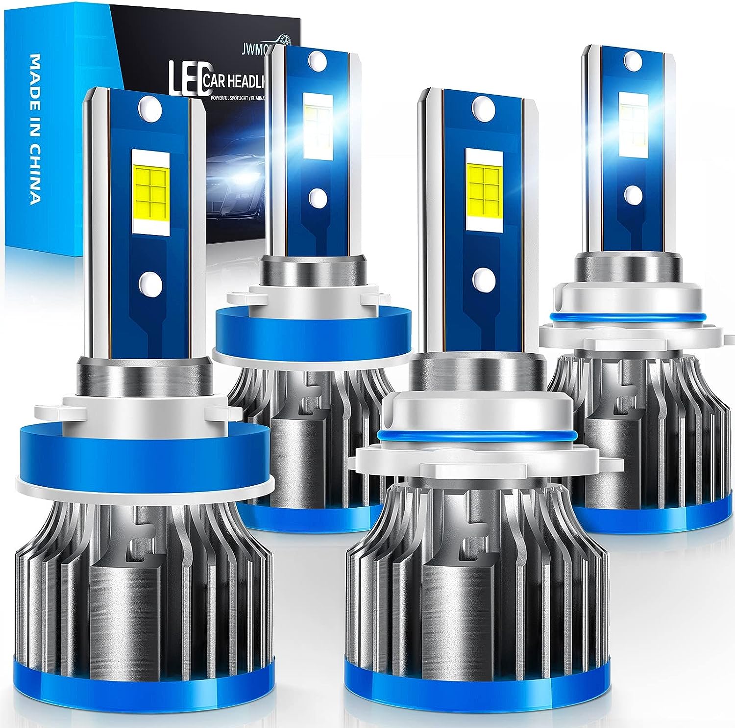 JWMOTOR H11/H9/H8 Low Beam 9005/HB3 High Beam LED Headlight Bulbs Combo, 160W 32000LM 300% Brighter LED Headlight Bulbs, 6500K Cool White LED Headlight Conversion Kit, Pack of 4