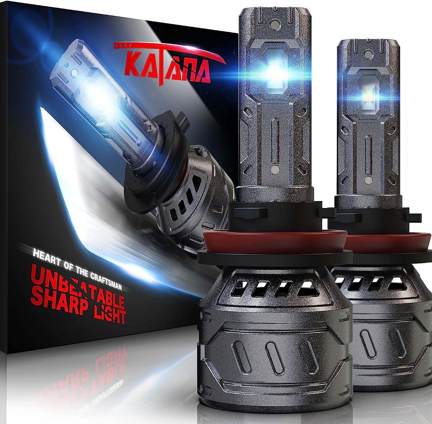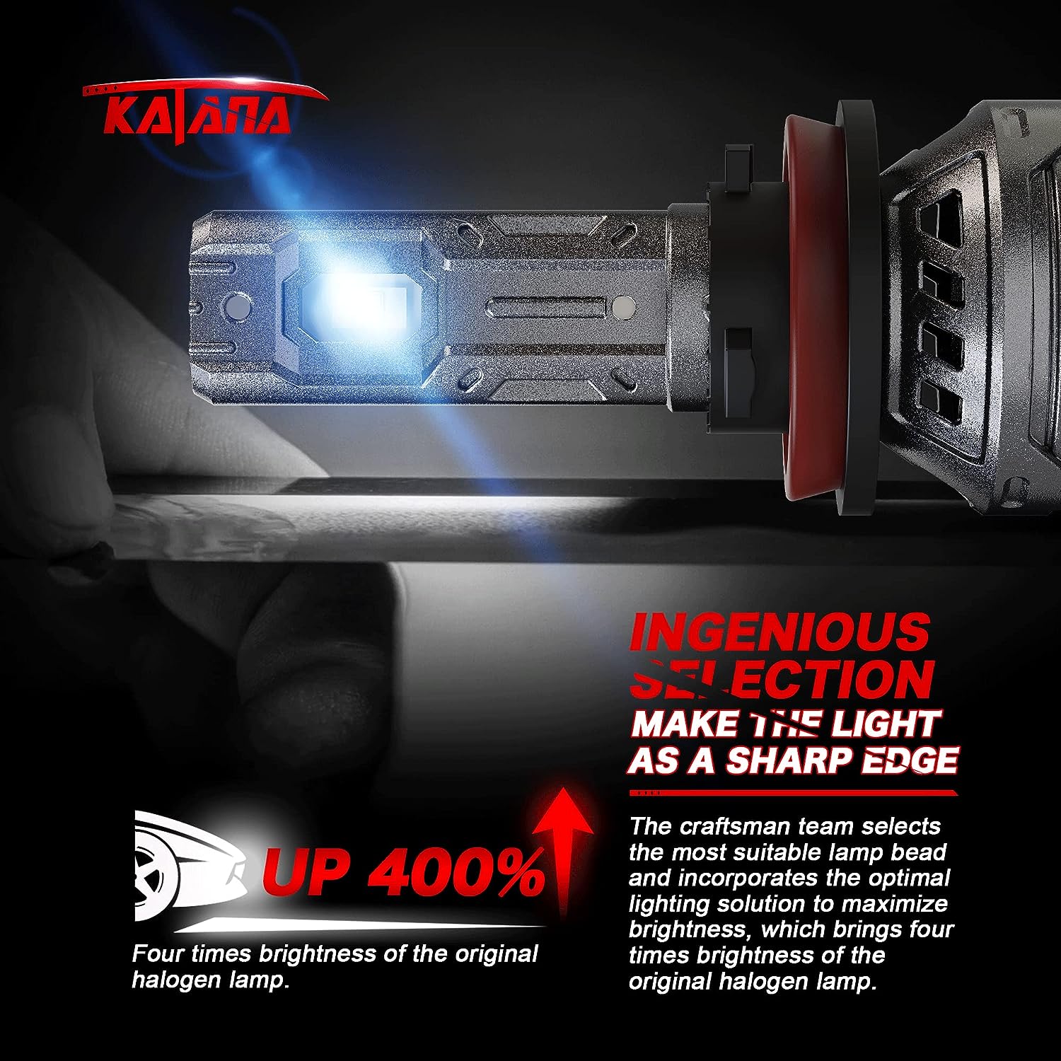 KATANA H11 LED Headlight Bulbs,16000LM 70W 6500K Extremely Super Bright H8 H9 LED Bulbs All-in-One Conversion Kit of 2 Halogen Replacement