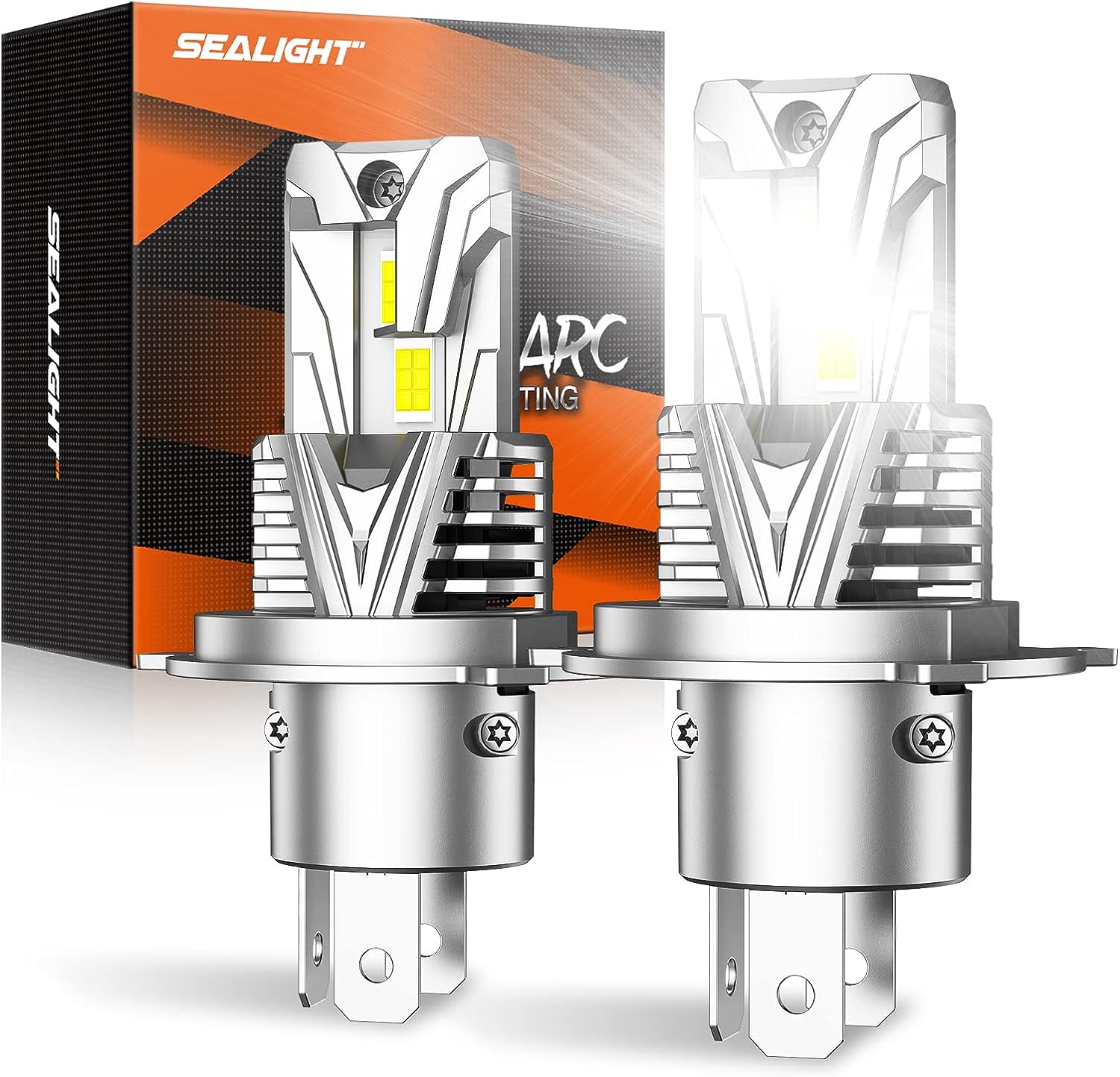SEALIGHT 9005 9006 LED Headlight Bulbs Combo, 200W 44000 LM 600% Brightness HB3 HB4 High and Low Beam LED Bulbs, 6500K Cool White, LED Headlight Halogen Replacement Bulbs with Cooling Fan, Pack of 4