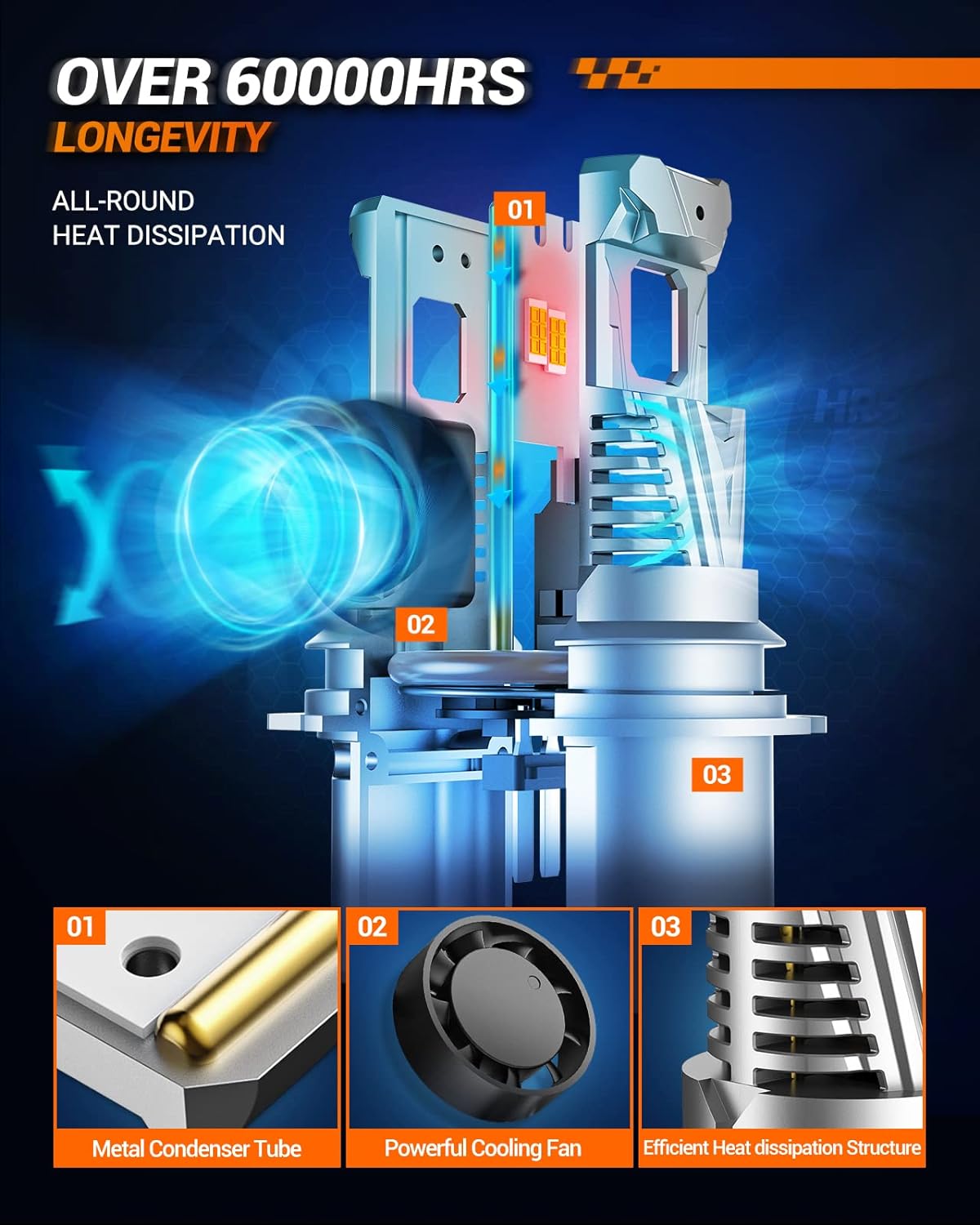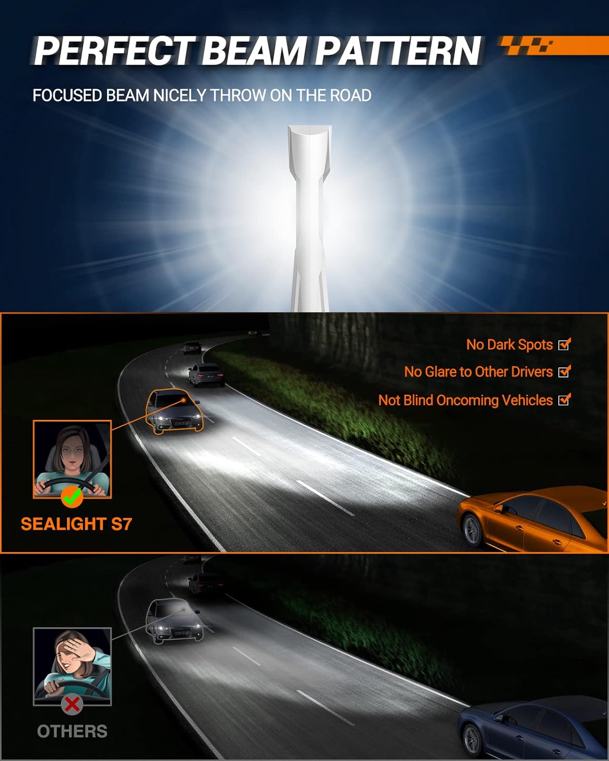 • 【Up to 60,000- hours Lifespan】The upgraded intelligent temperature control element ensures the led low and high will operate in a normal working temp range and provide up to 60,000 hours lifespan, at the mean time, our Sealight 9005 9006 has been rigorously tested for durability and Waterproof