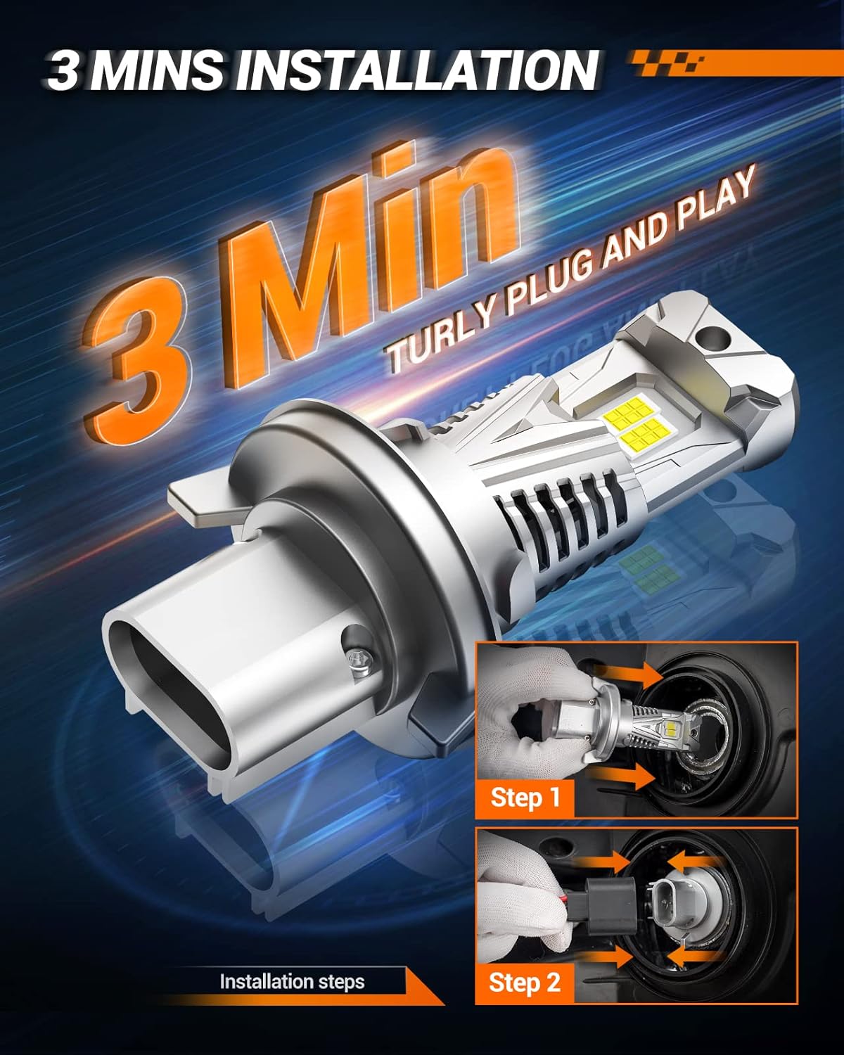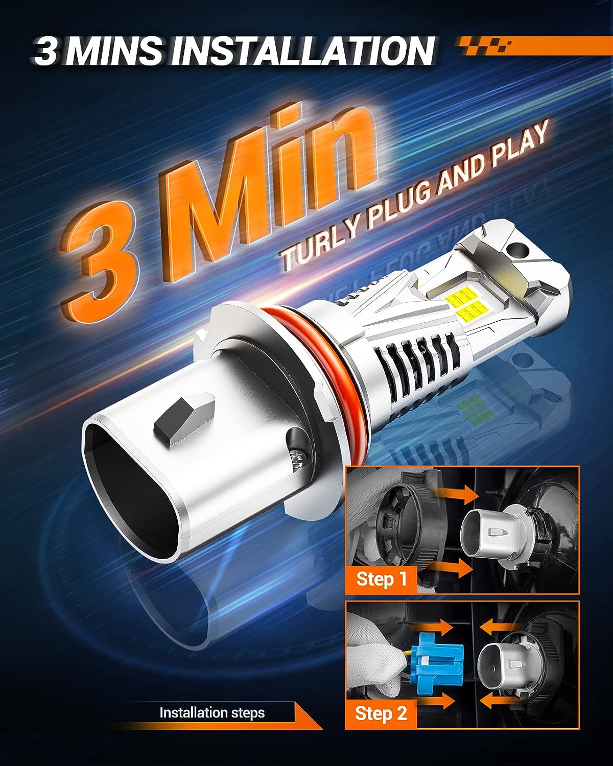 • 【3 Mins Installation】The upgrade 9005 9006 LED bulbs with directly plugged wireless design quickly install in 3 mins, no electromagnetic interference, non-polarity socket, No extra installation steps, easy to install without any modification, real plug and play