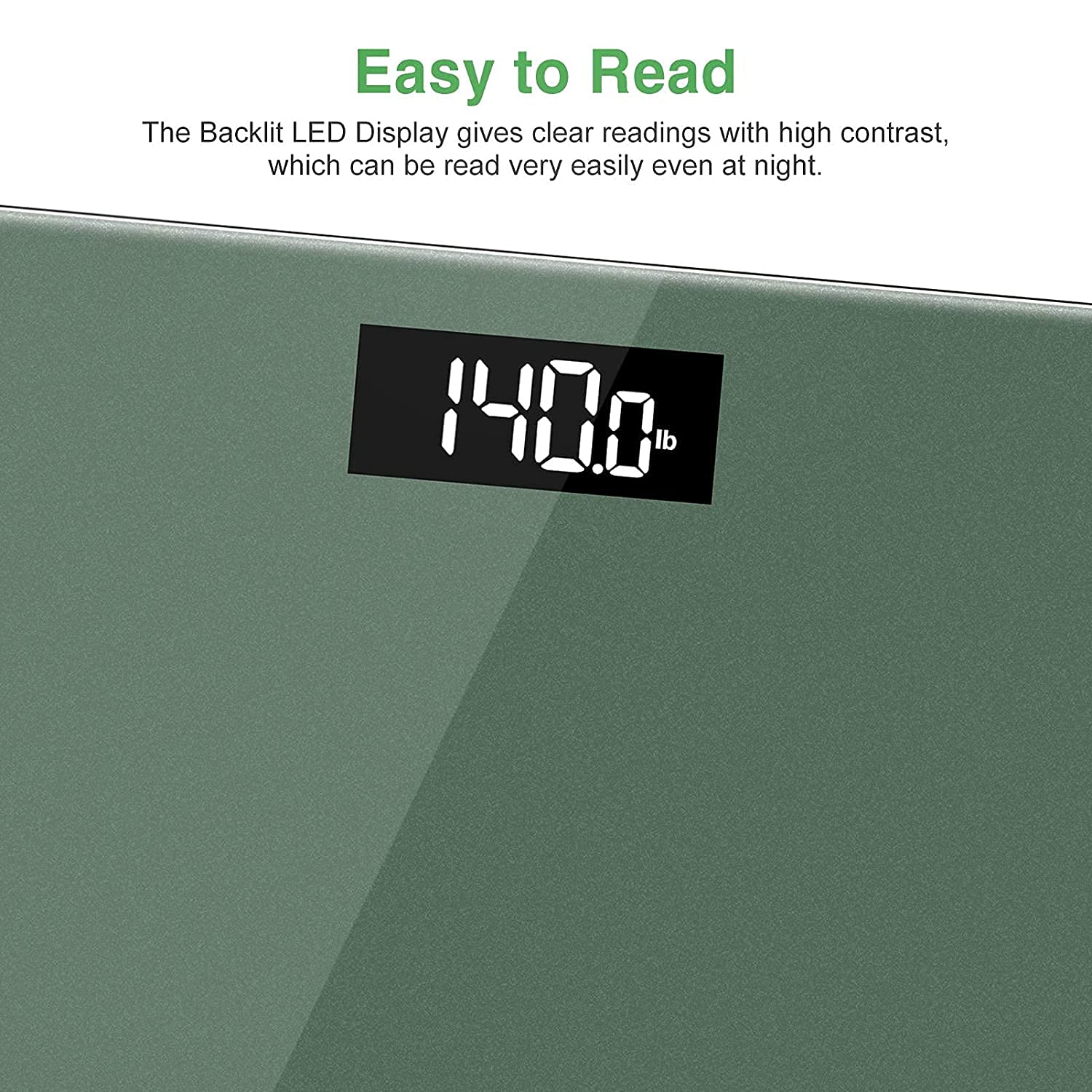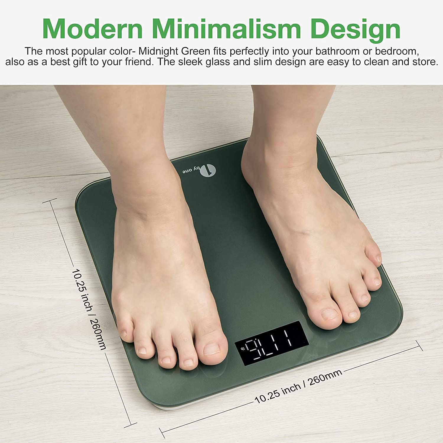 • Compact Size and Sleek Design: Midnight Green makes this body weight scale very impress, small and compact size (10.23*10.23*inches), and its low-profile and sleek design fits perfectly into your bathroom or bedroom, allow you put the scale anywhere and save much room