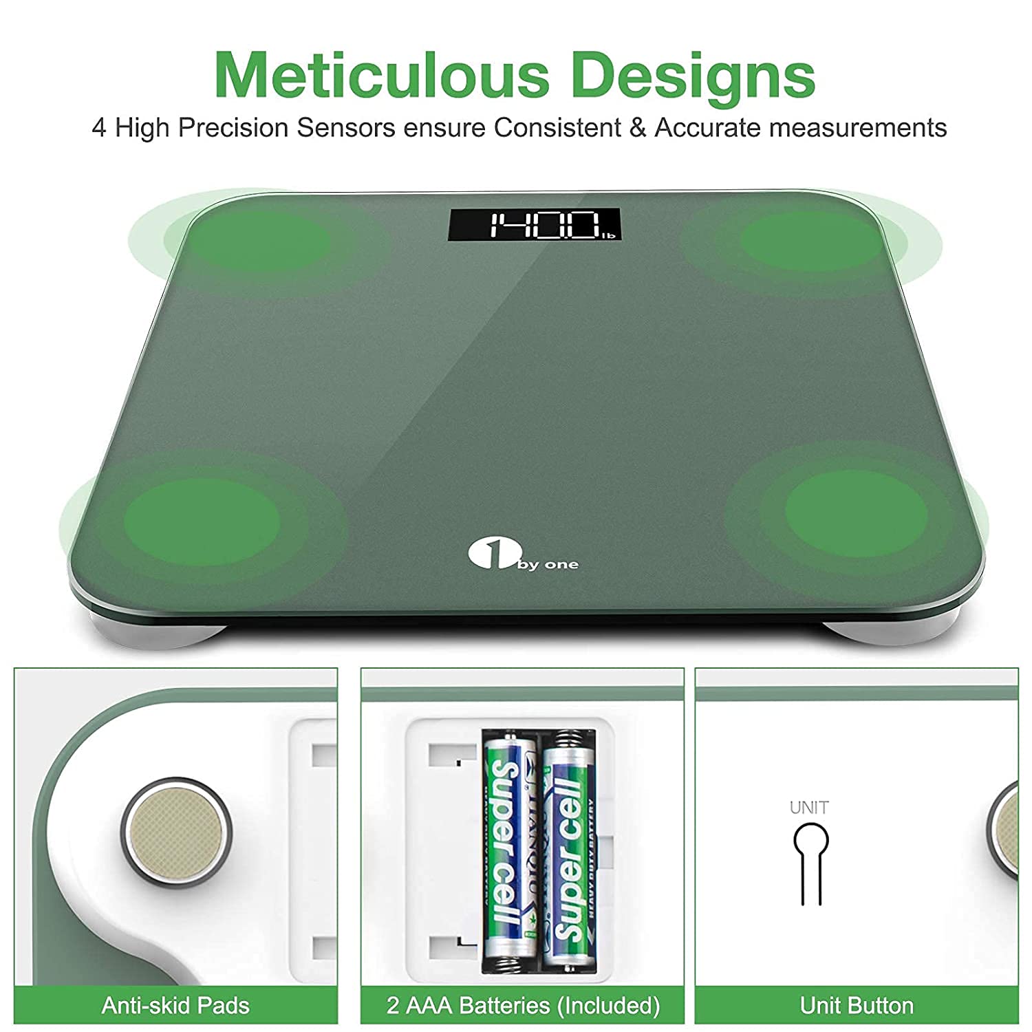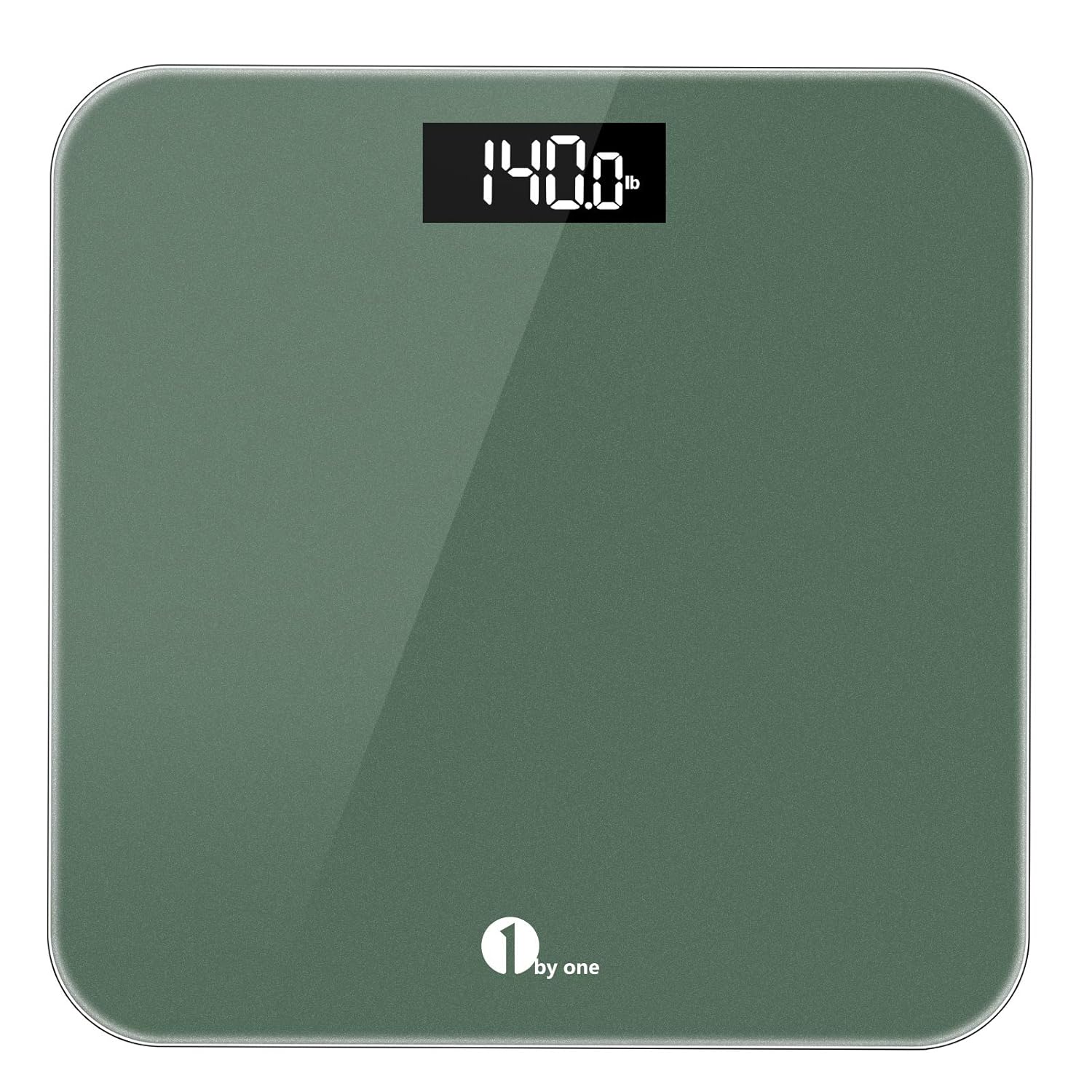 1 BY ONE Digital Body Weight Scale, Bathroom Weighing Scale for People with Large LED Display, 400 lbs,Tape Measure and Batteries Included