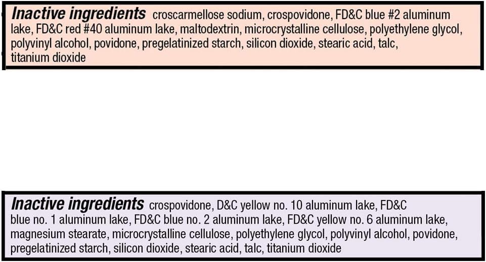 • COATED CAPLETS: Contain pain reliever/fever reducer, cough suppressant, nasal decongestant, antihistamine, expectorant (antihistamine in nighttime only, expectorant in daytime only)