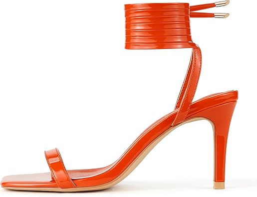 GENSHUO Women Strappy Heeled Sandals 3.14 inch Stilettos Lace Up Square Open Toe High Heels Sandals for Party, Prom