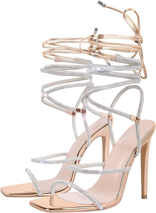 richealnini Women's Square Toe Lace Up Stilettos High Heel Sandals
