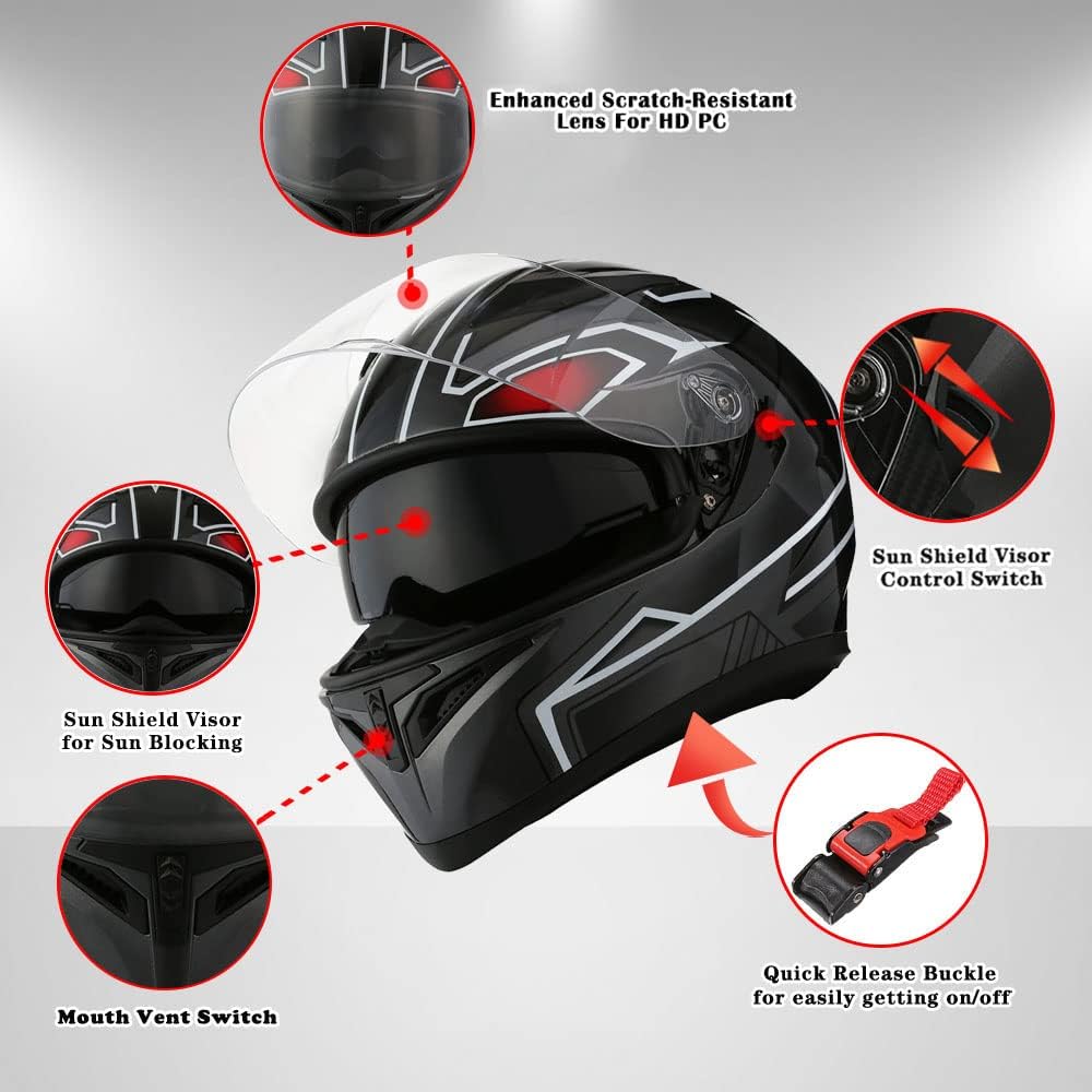 1STorm Motorcycle Street Bike Dual Visor/Sun Visor Full Face Helmet: HJK316
