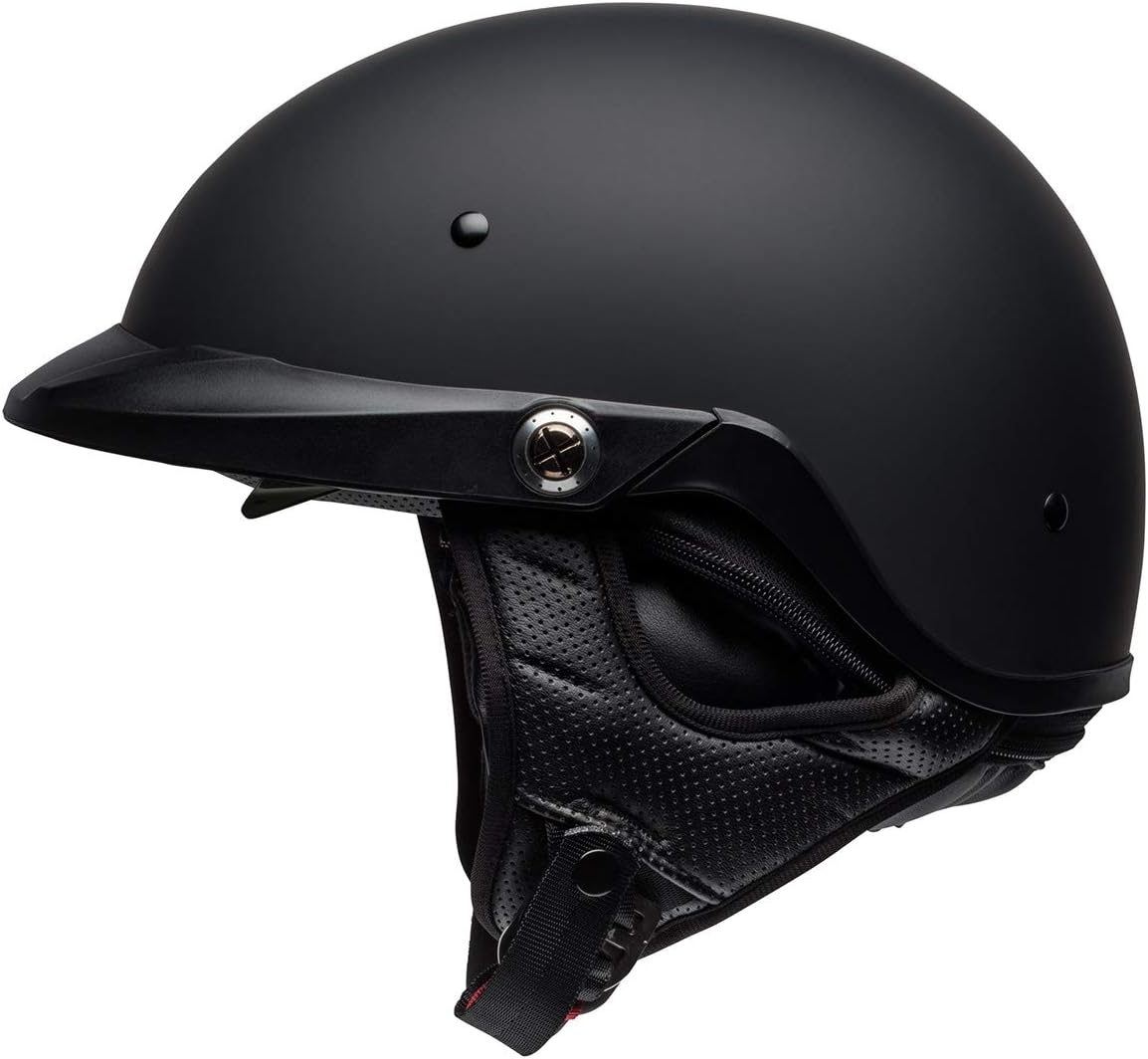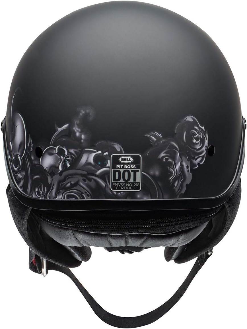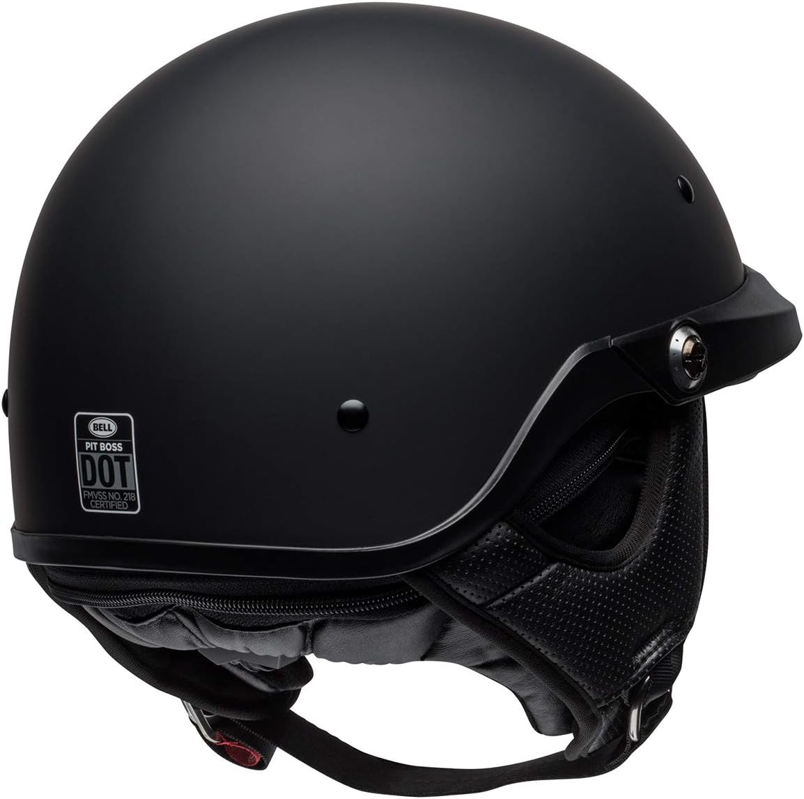 Lightweight Tri-Matrix (carbon/Kevlar/fiberglass composite) or full-carbon shell, an innovative Speed dial fit system that prevents “lift and slippage” plaguing most other half helmets, a drop-down internal sun shield provides on the fly protection from the sun, and a removable neck curtain not only offers cold weather protection but also houses speaker pockets should as a convenient way to add audio enhancement. Snug the Pit Boss onto your head, thumb the starter button, one ride will confirm the Pit Boss as the King of the Road.