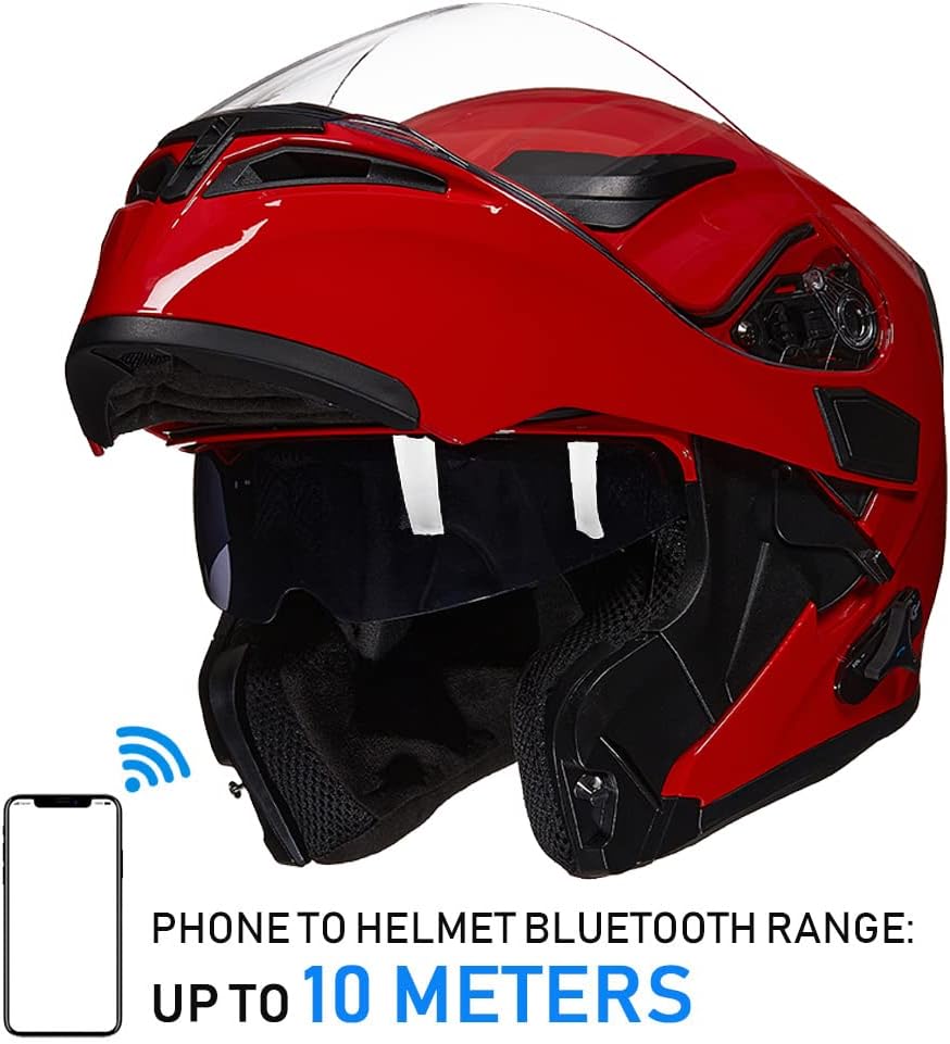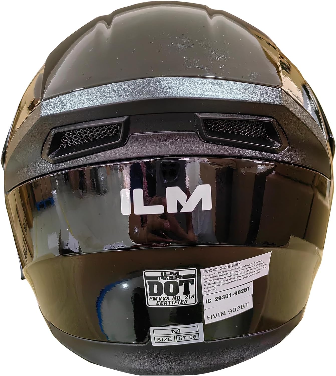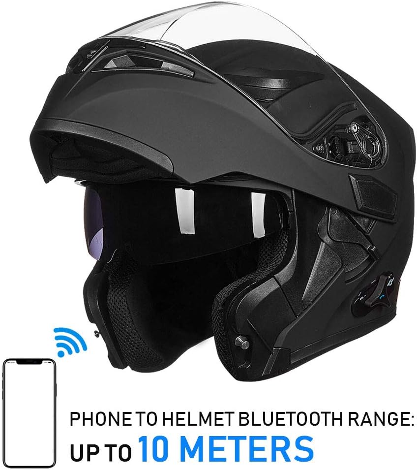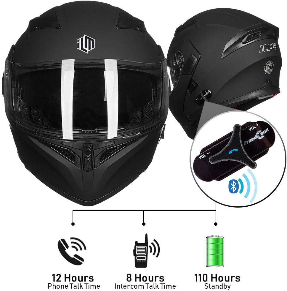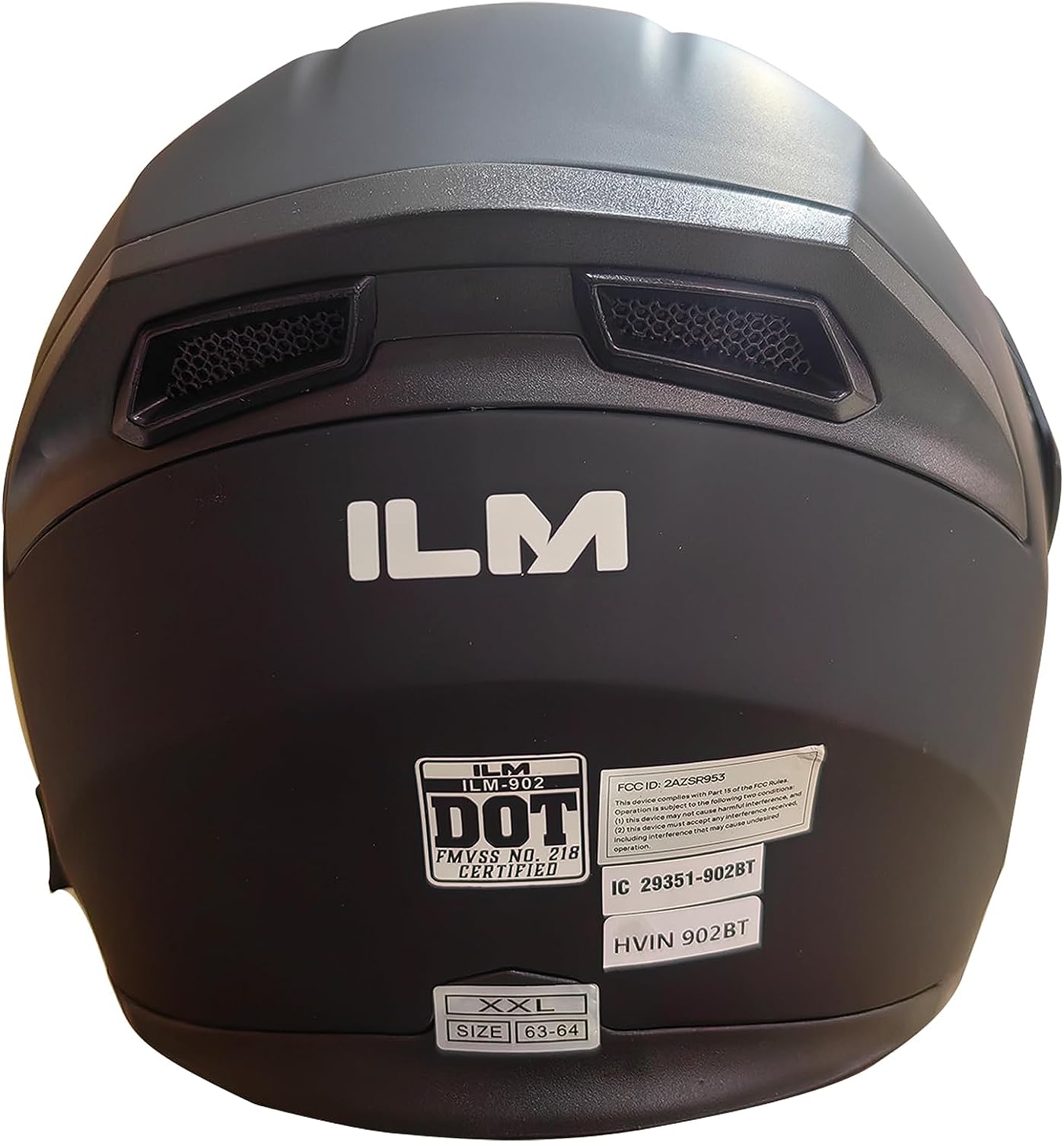 ILM Bluetooth Motorcycle Helmet Modular Flip up Full Face Dual Visor Mp3 Intercom FM Radio DOT Approved Model 902BT(Matte Black, 2XL)