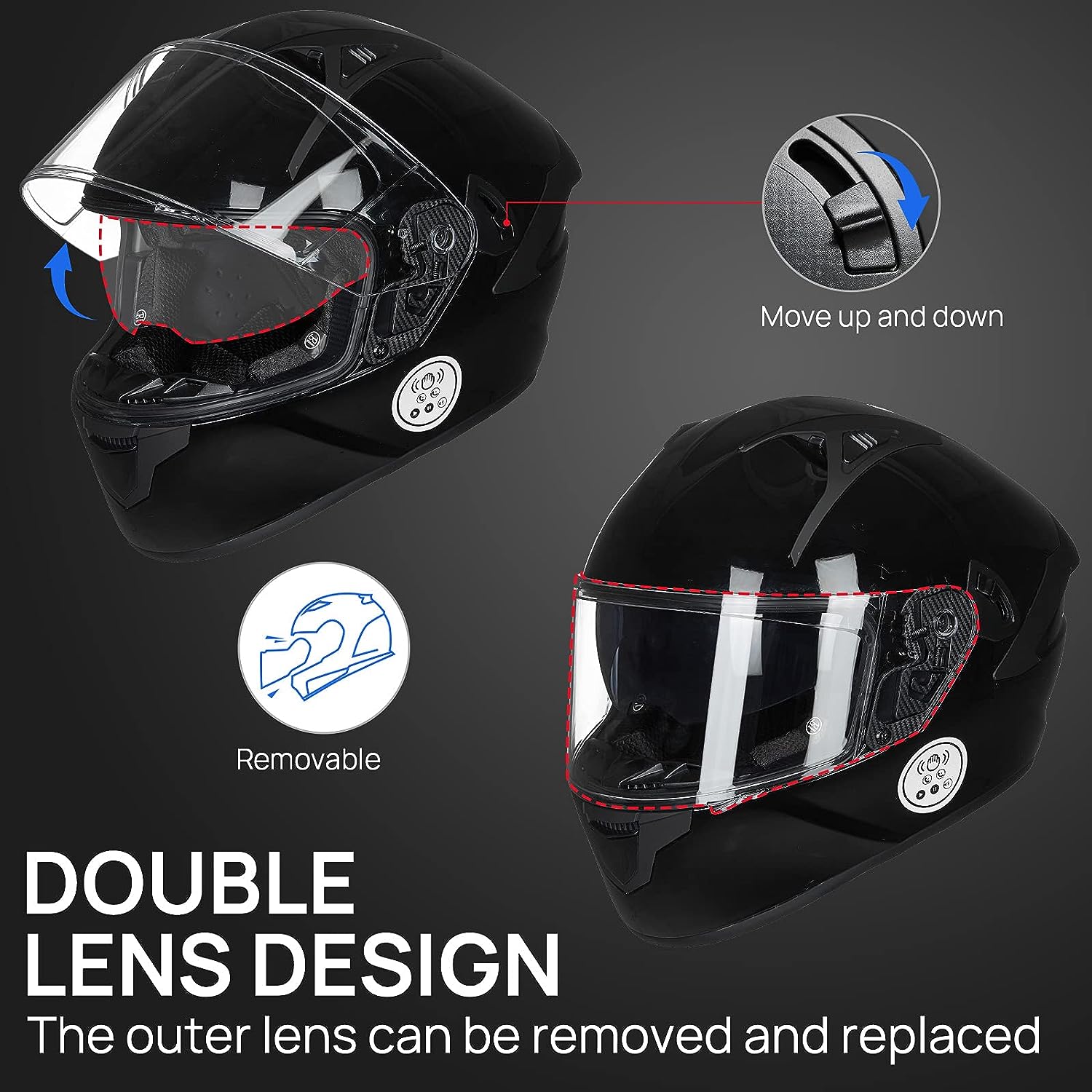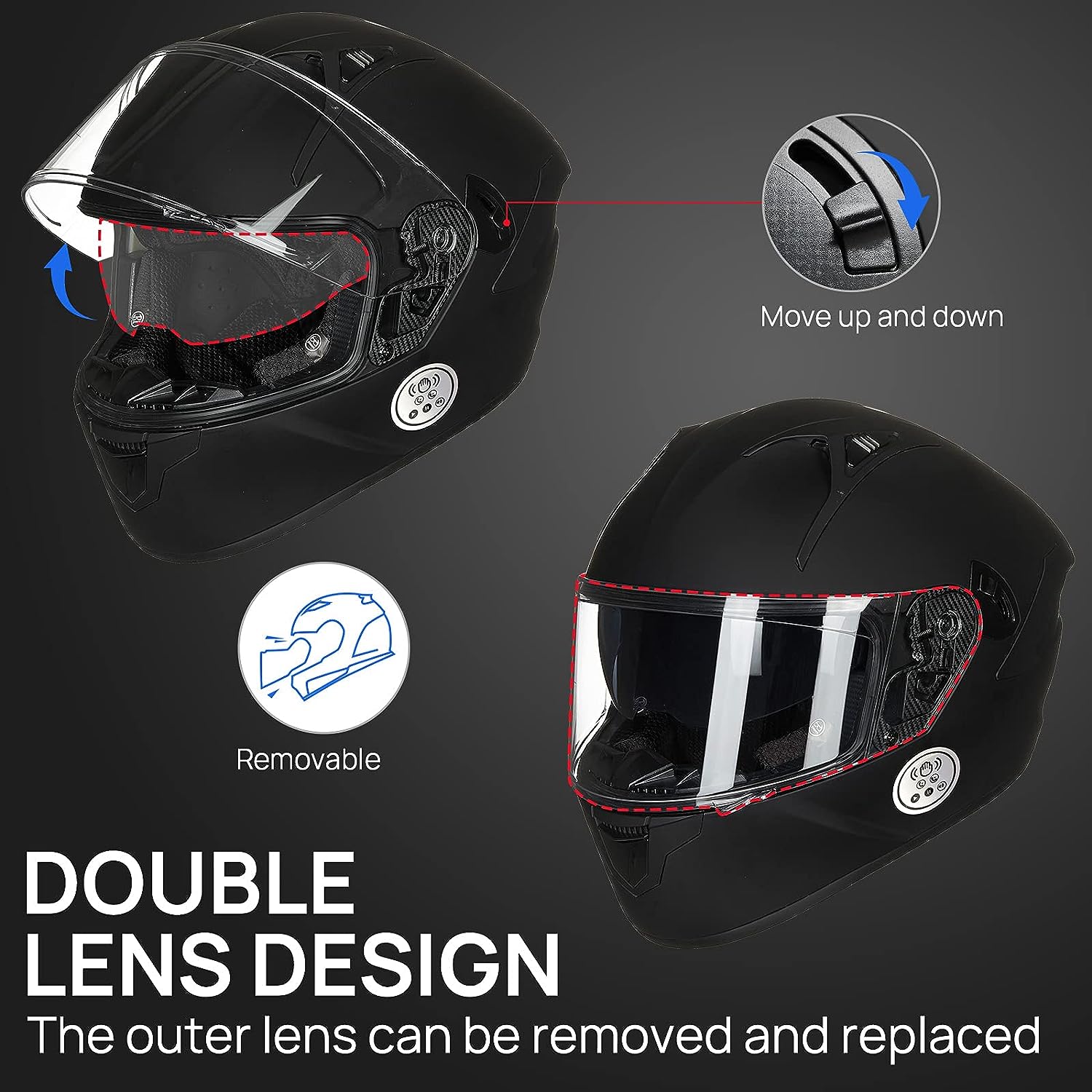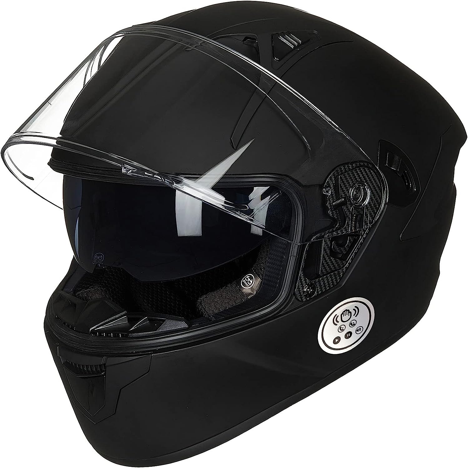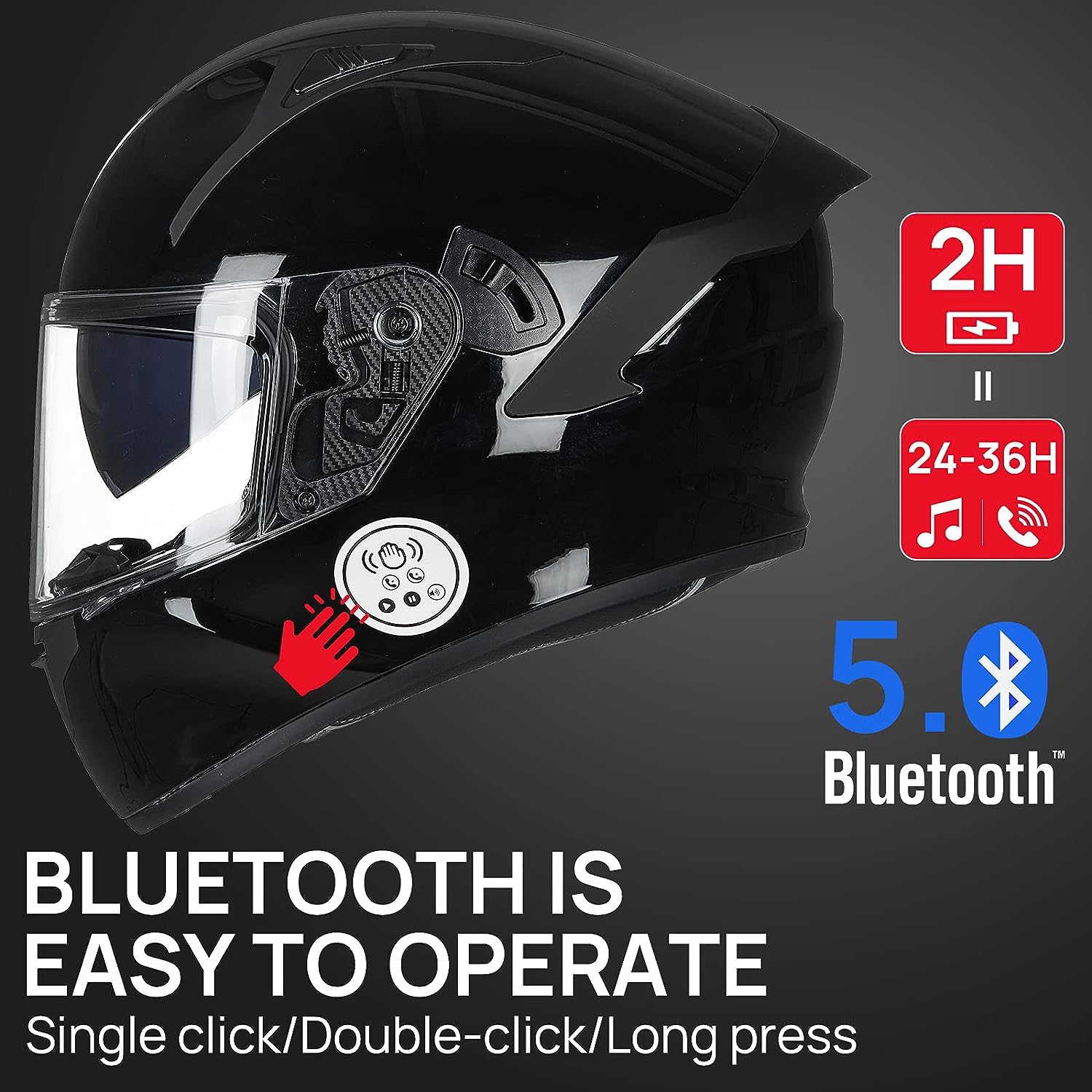 ILM Touch Built-in Bluetooth Integrated Full Face Motorcycle Helmet Dual Visor Voice Dial Hands-Free Call Bluetooth Helmet 24-36H Music Play DOT Helmet with Bluetooth 5.0 Model X9