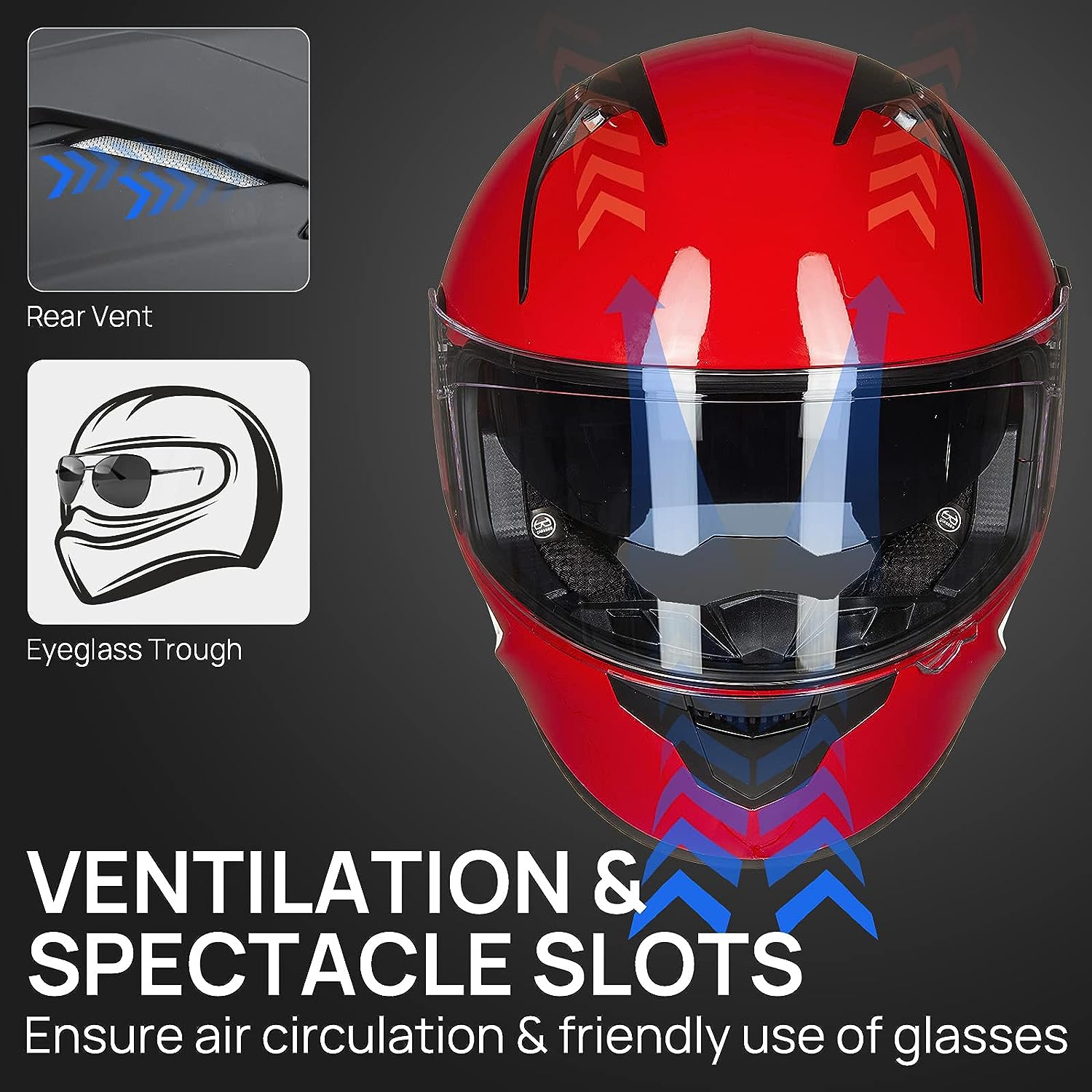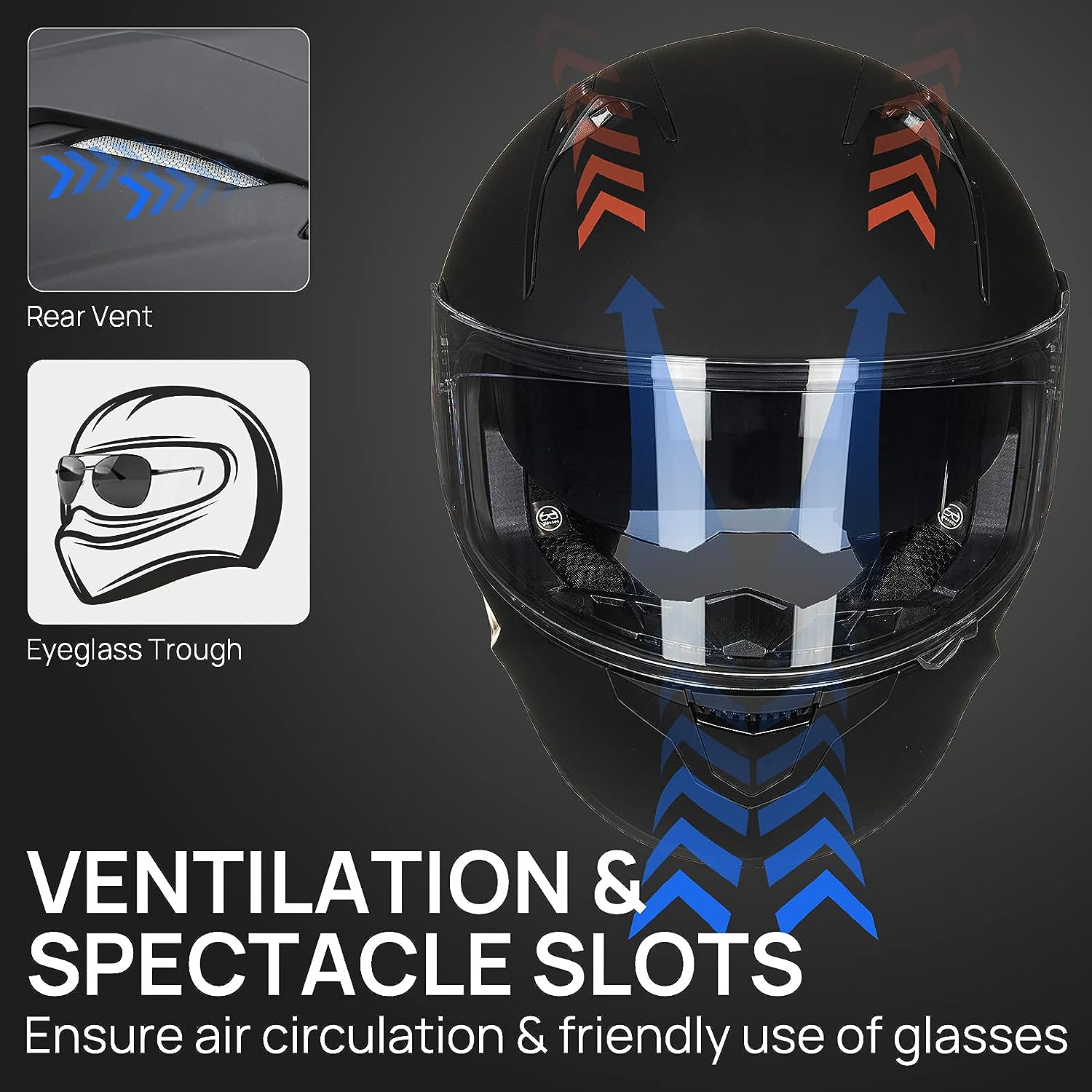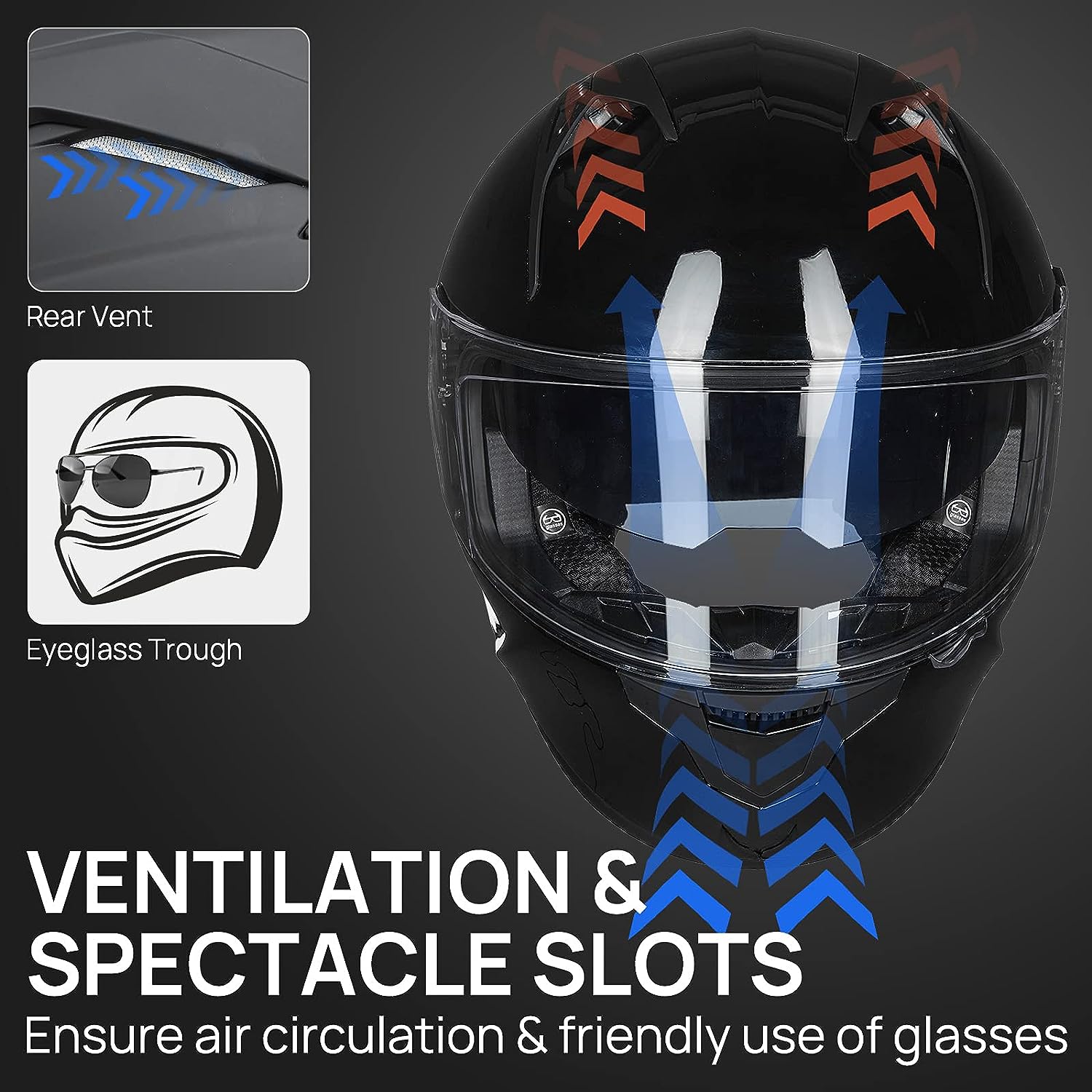 • Comfortable:excellent Ventilation System With 5 air vents promote airflow and double-visor design, you' ll feel it a comfortable and breathable experience wearing ILM Bluetooth helmet.Cheek pads and liner are absorbent and removable, easy to clean.