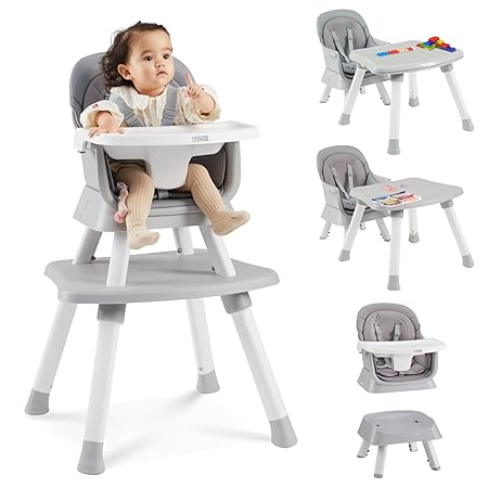 8 in 1 Baby High Chair with Removable Tray, Multifunctional High Chair for Babies and Toddlers, Converts Kids Table & Chair Set/Toddler Building Block Table/Step Stool/Small Dining Chair