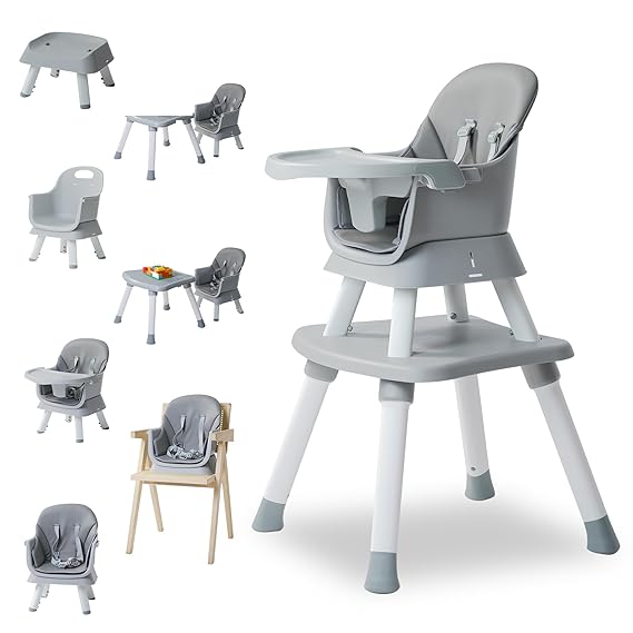 8 in 1 Highchairs for Babies and Toddlers, Nookbeya Baby High Chair Convertible High Chair for Baby, Kids Learning Table, Building Block Table, Kids Stool Table Chair Set with Removable Tray(Grey)