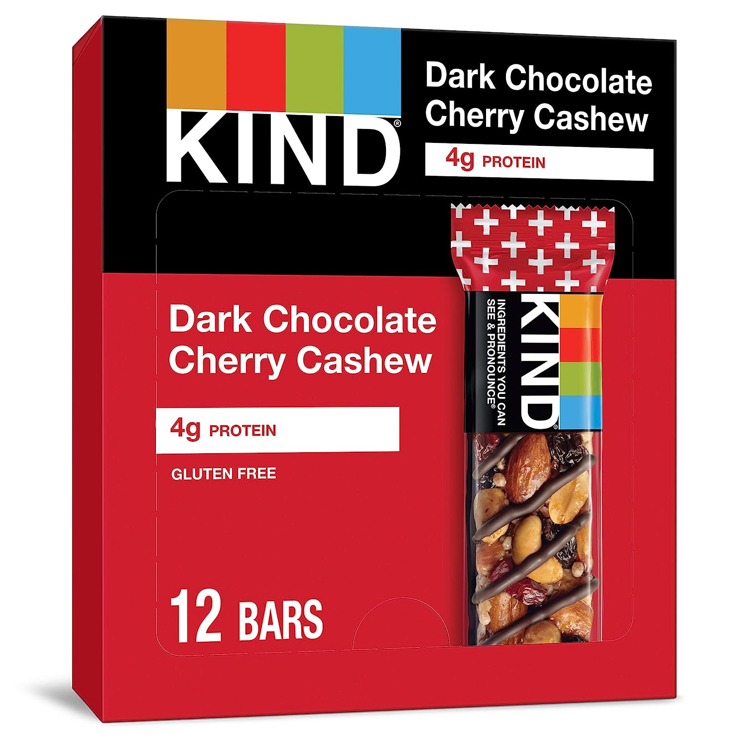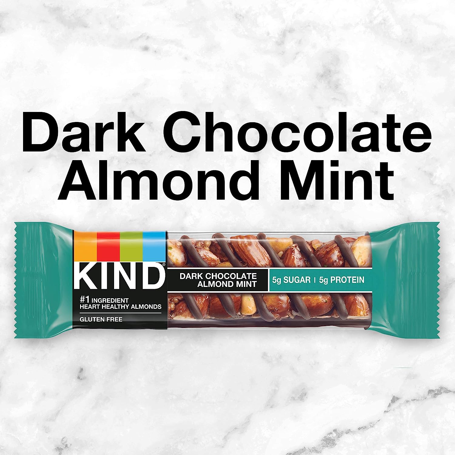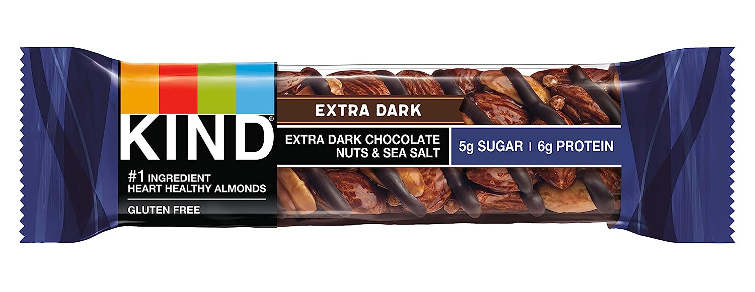 KIND Dark Chocolate Nuts & Sea Salt bars are satisfying gluten free bars packed with nuts and the taste of dark chocolate that you can take anywhere. These KIND nut bars lead with heart healthy almonds as the #1 ingredient. This healthy snack bar combines quality ingredients like almonds, dark chocolate, and sea salt to deliver a delicious taste with a little crunch. These snack bars come packed as individually wrapped snacks for a convenient option that makes eating healthy easier. It's the perfect nutrient-dense pick-me-up when life gets in the way. KIND bars Dark Chocolate Nuts & Sea Salt contain 5 grams of sugar, 6 grams of protein, and are a good source of fiber*. This KIND nut bar is also gluten free, has a low glycemic index, and is made without genetically engineered ingredients. *Contains 14g of fat per bar