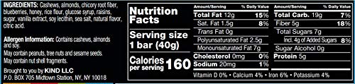 KIND Pomegranate Blueberry Pistachio bars are satisfying gluten free bars packed with nuts and pomegranates that you can take anywhere. These KIND nut bars lead with heart healthy almonds as the #1 ingredient. This healthy snack bar combines quality ingredients like almonds, pistachios, blueberries and pomegranate to deliver a delicious taste with a little crunch. These snack bars come packed as individually wrapped snacks for a convenient option that makes eating healthy easier. It's the perfect nutrient-dense pick-me-up when life gets in the way. KIND bars Pomegranate Blueberry Pistachio contain 5 grams of protein and are a good source of fiber*. This KIND nut bar is also gluten free, has a low glycemic index, and is made without genetically engineered ingredients. *Contains 12g of fat per bar
