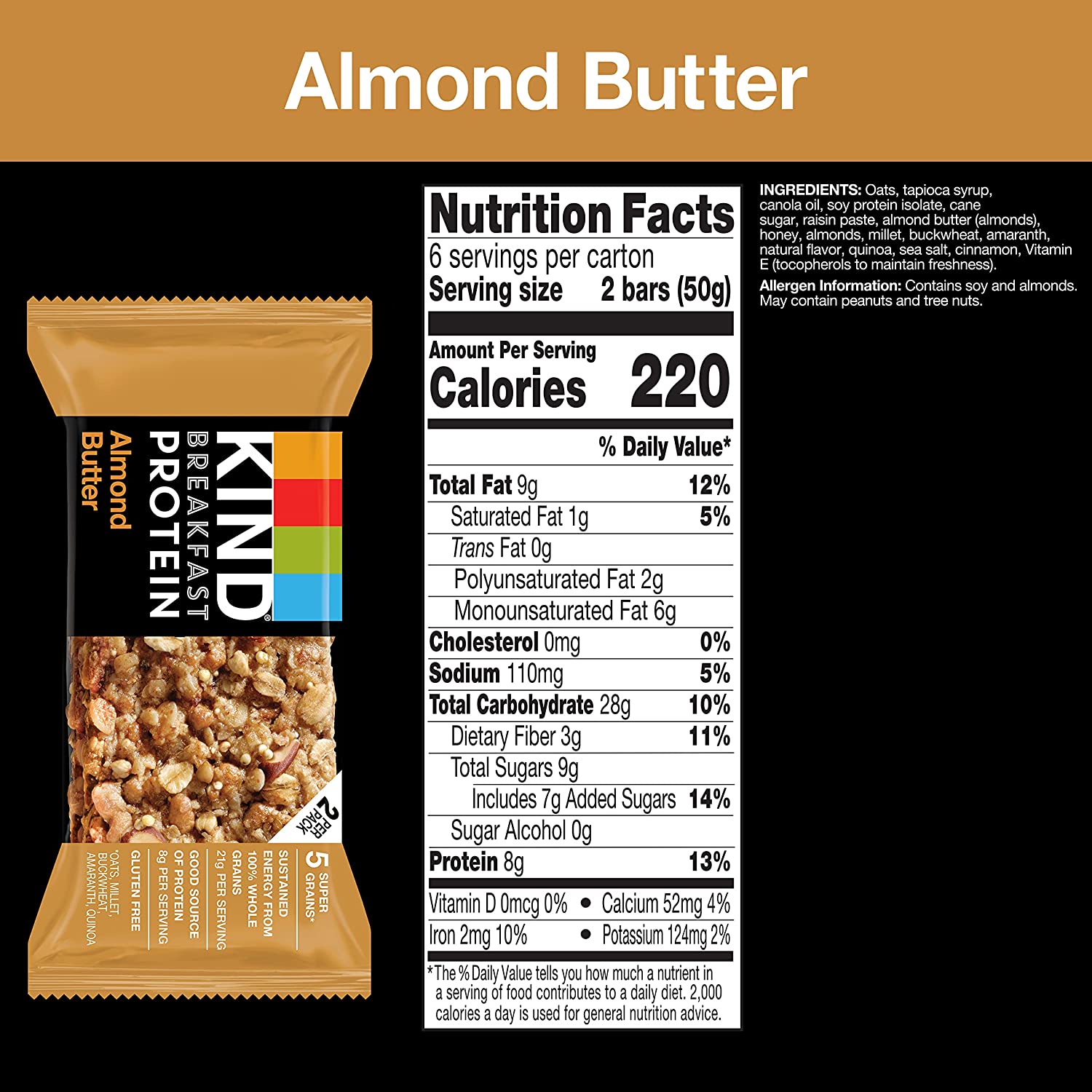 KIND Breakfast, Healthy Snack Bar, Almond Butter, Gluten Free Breakfast Bars, 8g Protein, 1.76 OZ Packs (30 Count)