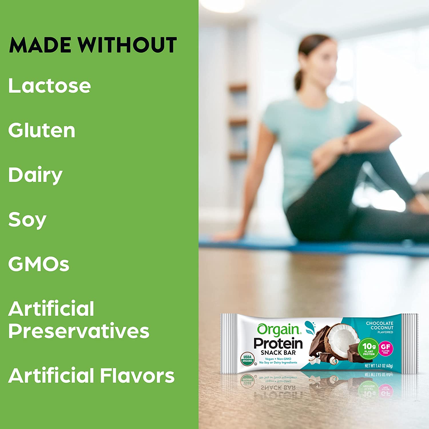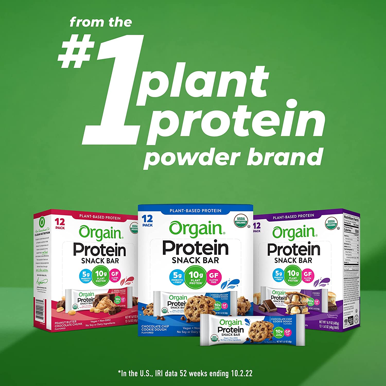 For those in need of a protein bar that’s delicious as it is nutritious, look no further Here at Orgain, we’re serious about good, clean nutrition™, and when we say “good,” we mean it in every sense of the word! It can’t just be good for you, it has to taste GOOD too (great actually)! That’s why we worked relentlessly to create our Organic Protein Snack bars. Conveniently portable and crafted to be irresistibly delicious, every bar is packed with 10 grams of plant-based protein, 150 calories, 6g prebiotic + fiber, and made with our high-quality ingredients without any artificial flavors, sweeteners, or preservatives. Oh, they’re also certified USDA Organic, gluten free, vegan, non-GMO, and have no dairy or soy ingredients. Whether you’re a busy professional, parent, athlete, or anyone in need of a tasty anytime snack, we made these to help you take on whatever life decides to throw at you. Simply put, these bars are the real deal and are available in six enticing flavors that are sure to satisfy any taste buds: Chocolate Chip Cookie Dough, Peanut Butter Chunk, Peanut Butter, Chocolate Brownie, S’mores, and Chocolate Coconut. Good, clean nutrition™ ready for you to take it on the go, whenever and wherever you need it.