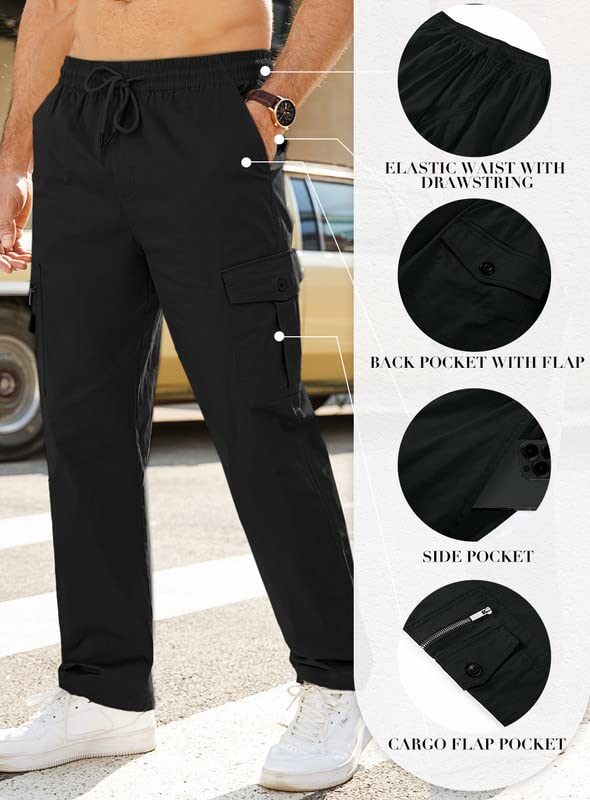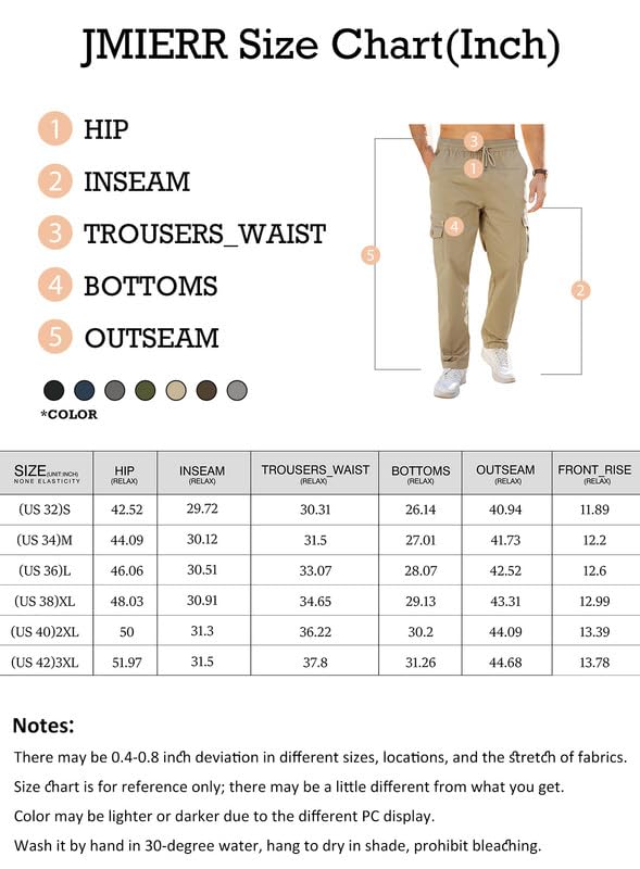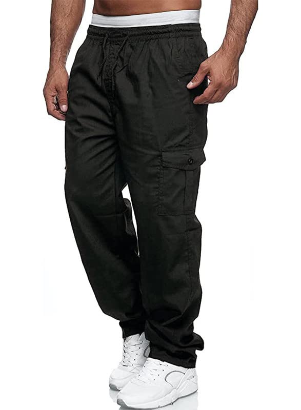 Details: JMIERR Mens Casual Cargo Pants Relaxed Fit Lightweight Elastic Waist Drawstring Tactical Joggers Pants Multi Pockets