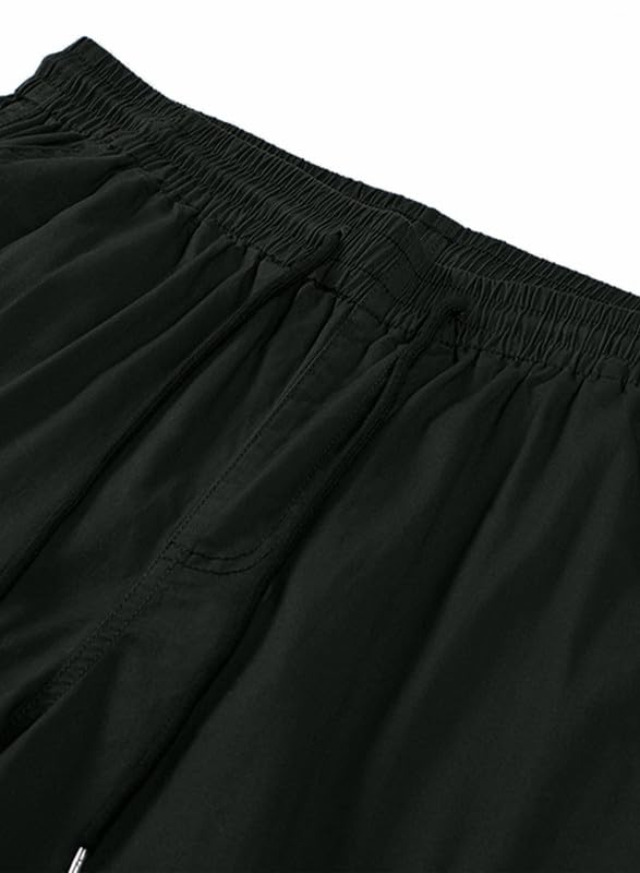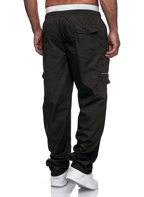 JMIERR Casual Cargo Pants for Men Drawstring Elastic Waist Stretch Work Pants Tactical Lightweight Hiking Joggers Sweatpants with Pockets,US 34(M),A Black