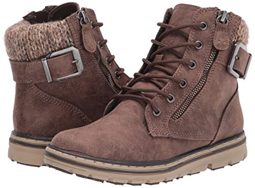 Details: Women's Cliffs by White Mountain, Kelsie Boot. These womens lace-up hiker inspired ankle boots from White Mountain have been designed with the softness and comfort youve been waiting for. Featuring a faux suede uppers with sweater collar and buckle detail, this stylish and functional boot is great for off-the-grid adventures or everyday wear. The winter boot will keep your feet warm and dry, with a light cushioned insole, sturdy synthetic lug outsole, and a lace-up entry with full side zip for secure fit. Faux suede uppers with sweater collar and buckle detail Hiking boot style with a round toeLace-up entry with full side zip for secure fitLight cushioned insoleSynthetic lug outsole