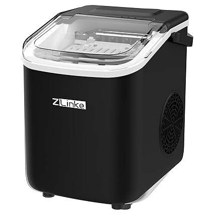 Countertop Ice Maker Machine - 6 Mins 9 Bullet Ice, 26.5lbs/24Hrs, Portable With Self-Cleaning, Scoop, and Basket (Black)