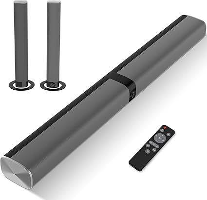 Sound Bar for Smart TV, 60W Soundbar for TV, Wired & Bluetooth Connection with Dynamic Volume Boost & 3 Equalizer Modes, ARC/Optical/AUX Connection, 2 in 1 Detachable TV Sound Bar