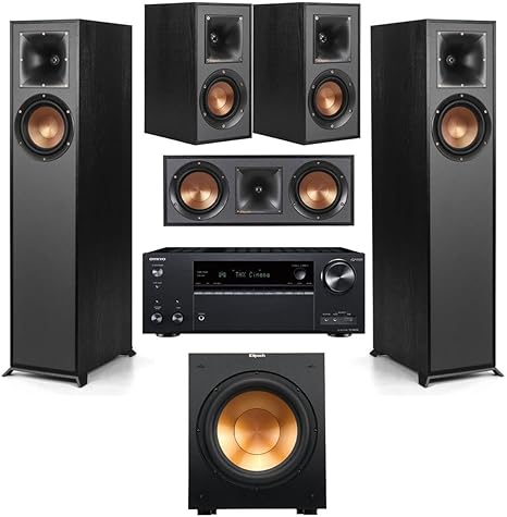 Klipsch Reference R-52C Center Channel Home Speaker, Black Bundle with R-52C Center Speaker, R-12SW 12" 400W Powered Subwoofer, R-41M Bookshelf Speakers, 9.2-Channel Network A/V Receiver