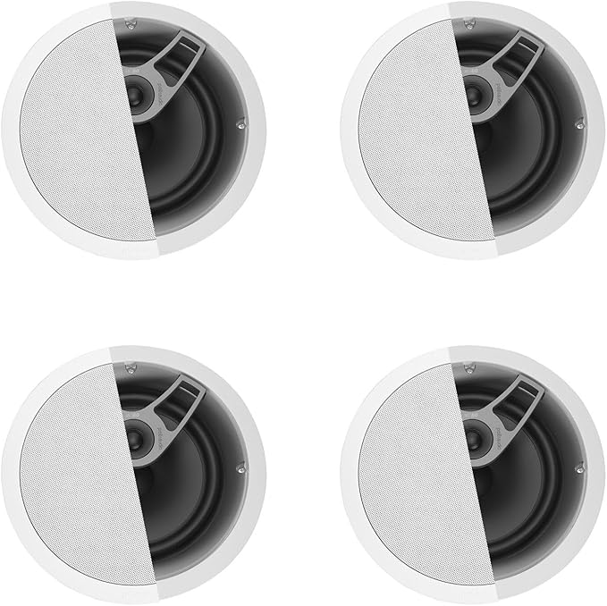 Polk Audio MC80 2-Way In-Ceiling 8" Speakers, 4 Pack | White, Paintable-Grille | Moisture Resistant for Damp & Humid Areas | 8 Ohms, 92 dB Sensitivity, 50-20, 000 Hz Frequency Response